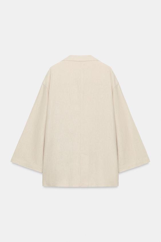 ZARA ДВУБОРТНЫЙ БЛЕЙЗЕР ИЗ ЛЬНА, СВЕТЛО-БЕЖЕВЫЙ