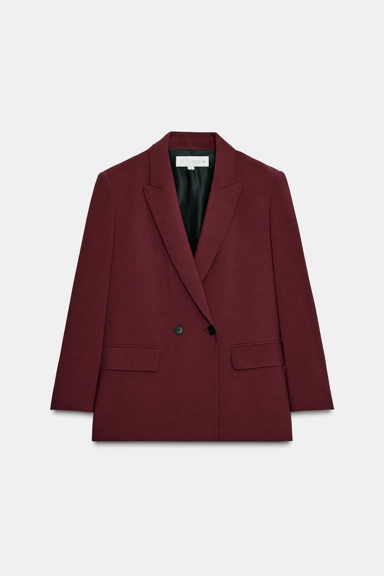 ZARA ДВУБОРТНЫЙ БЛЕЙЗЕР ОВЕРСАЙЗ, БУРГУНДИ
