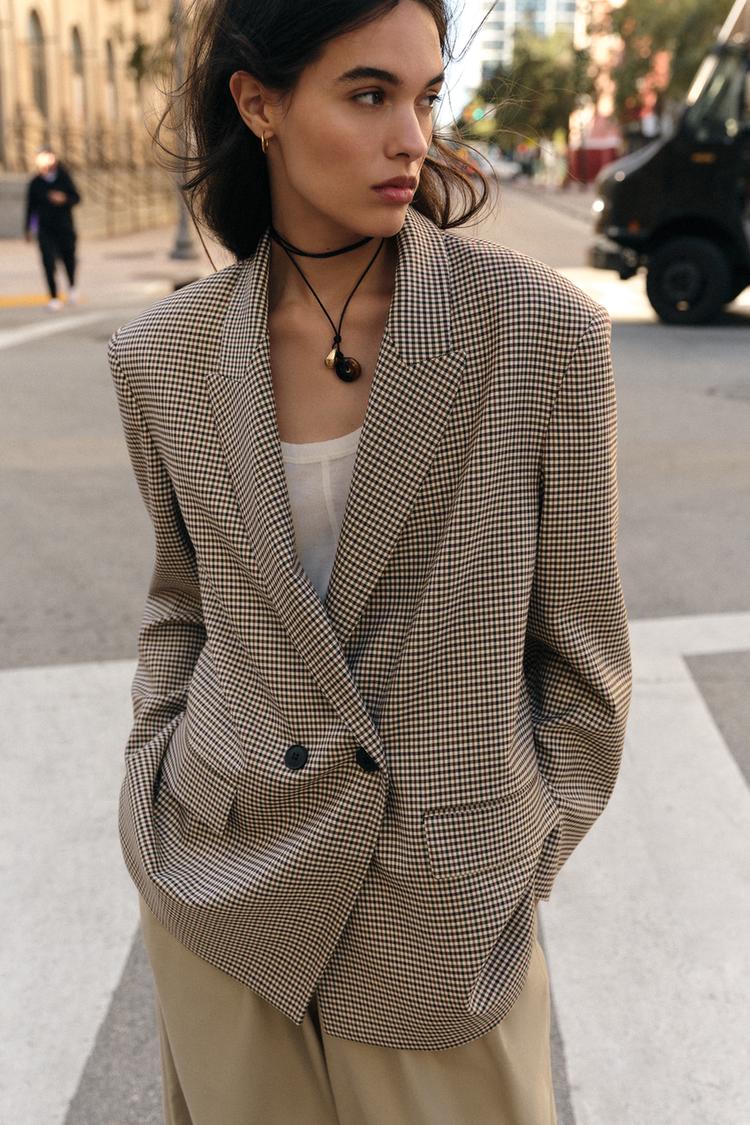 ZARA ДВУБОРТНЫЙ БЛЕЙЗЕР ОВЕРСАЙЗ, ЧЕРНЫЙ/ЗЕЛЕНЫЙ