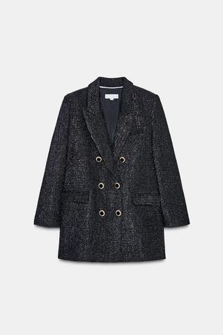 ZARA ДВУБОРТНЫЙ БЛЕЙЗЕР С МЕТАЛЛИЗИРОВАННОЙ НИТЬЮ, ЧЕРНЫЙ