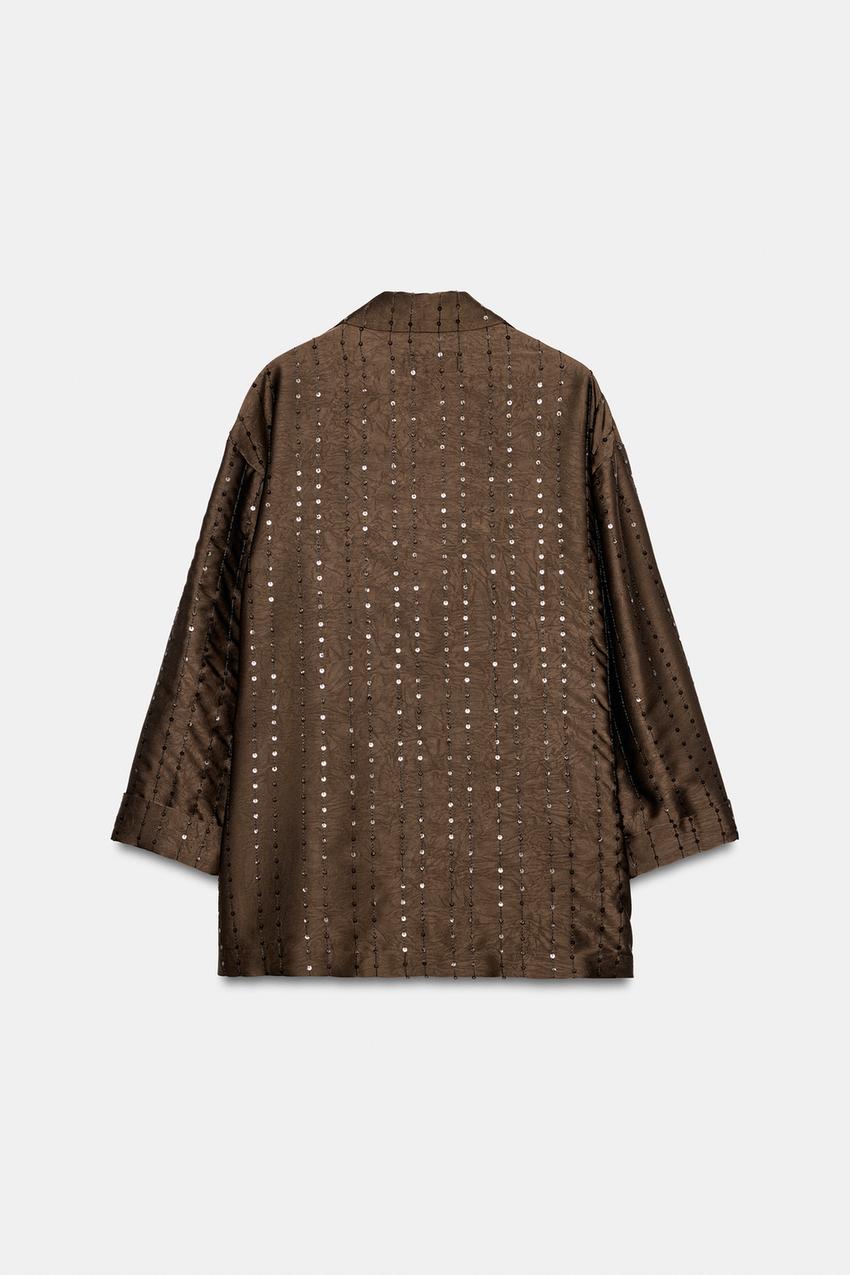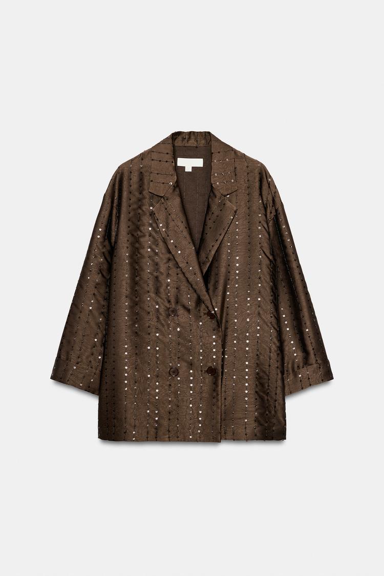 ZARA ДВУБОРТНЫЙ БЛЕЙЗЕР С ПАЙЕТКАМИ, КОРИЧНЕВЫЙ