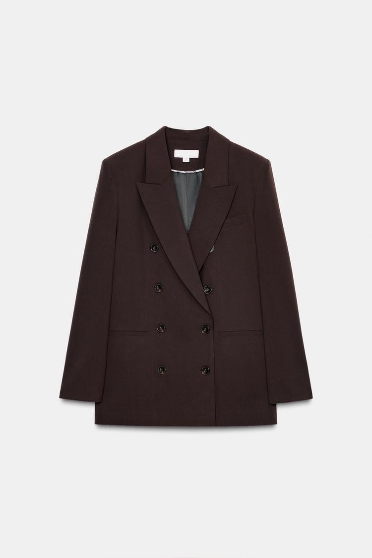ZARA ДВУБОРТНЫЙ БЛЕЙЗЕР С ПОДПЛЕЧНИКАМИ, КОРИЧНЕВЫЙ