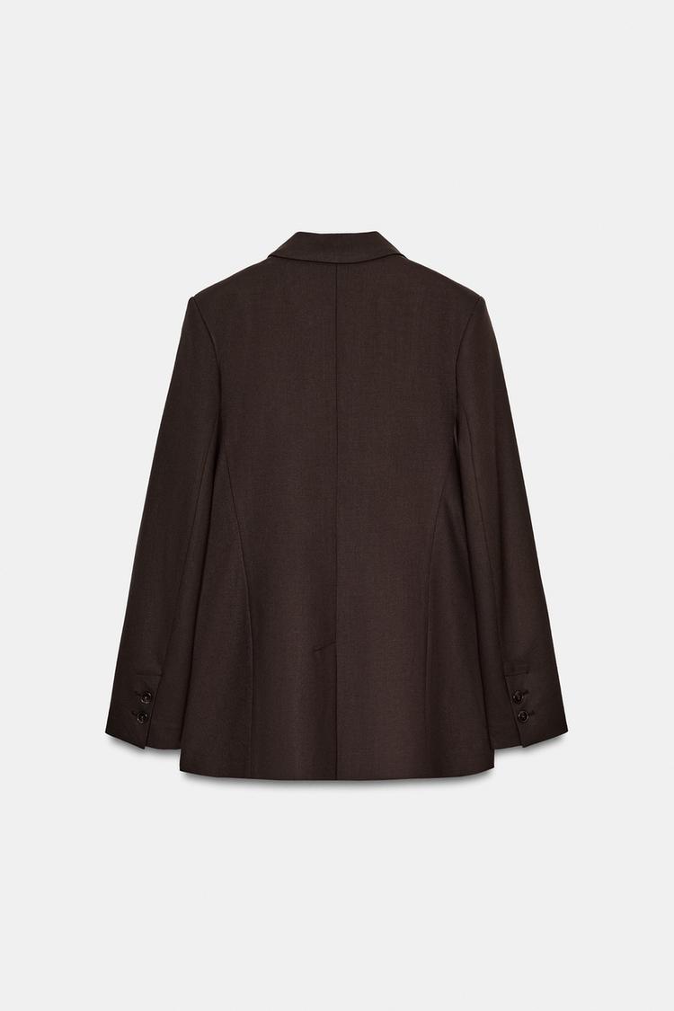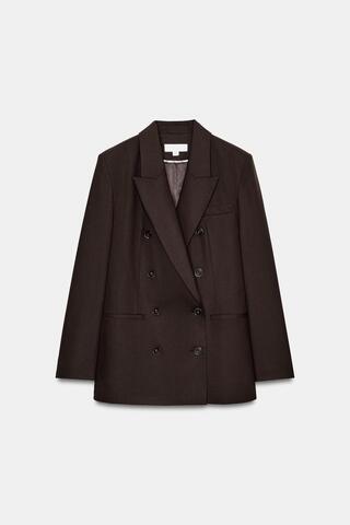 ZARA ДВУБОРТНЫЙ БЛЕЙЗЕР С ПОДПЛЕЧНИКАМИ, КОРИЧНЕВЫЙ