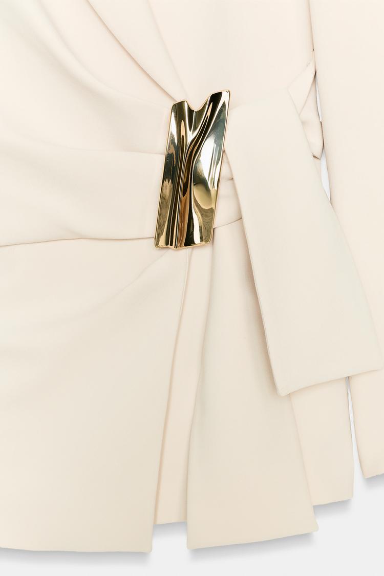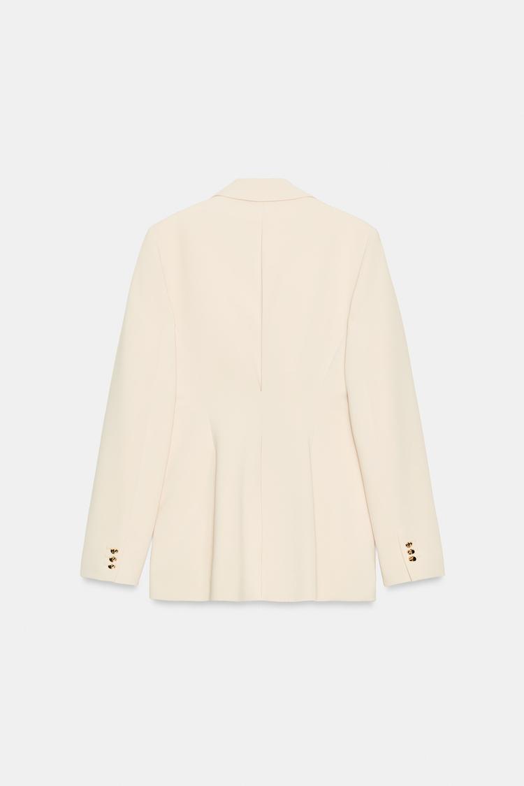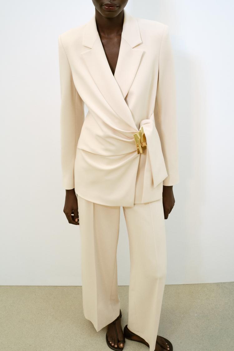 ZARA ДВУБОРТНЫЙ БЛЕЙЗЕР С ПРЯЖКОЙ, ЭКРЮ