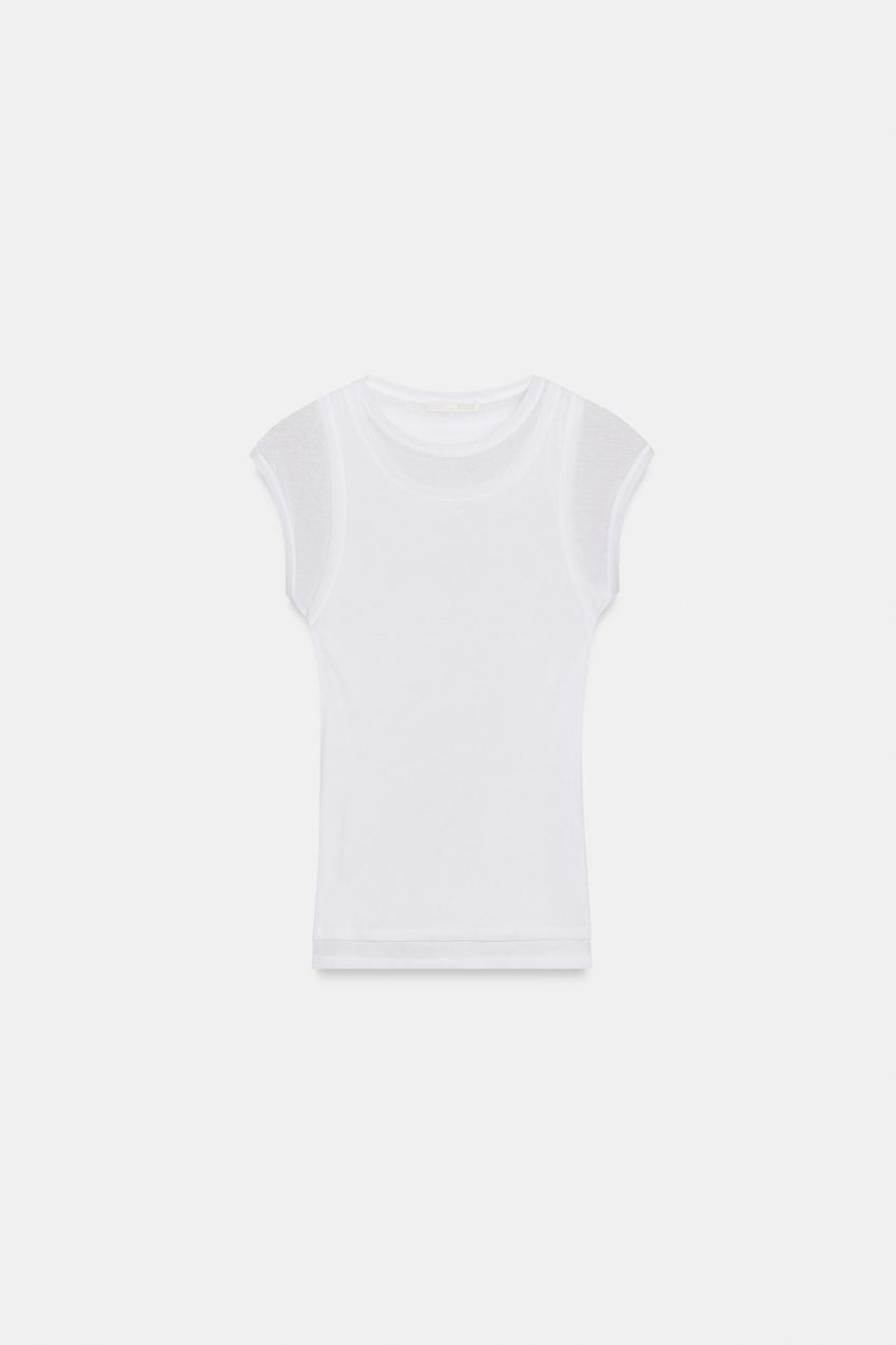 ZARA ДВУХСЛОЙНАЯ ФУТБОЛКА SUPIMA®, БЕЛЫЙ