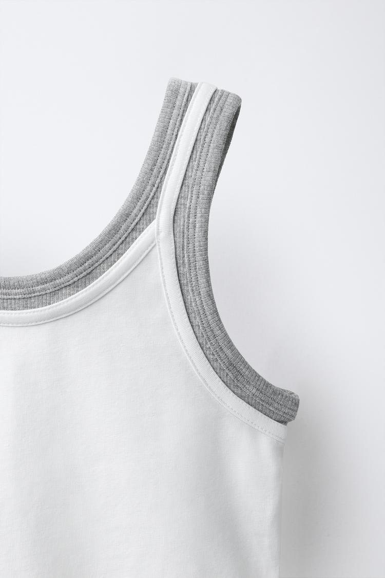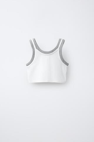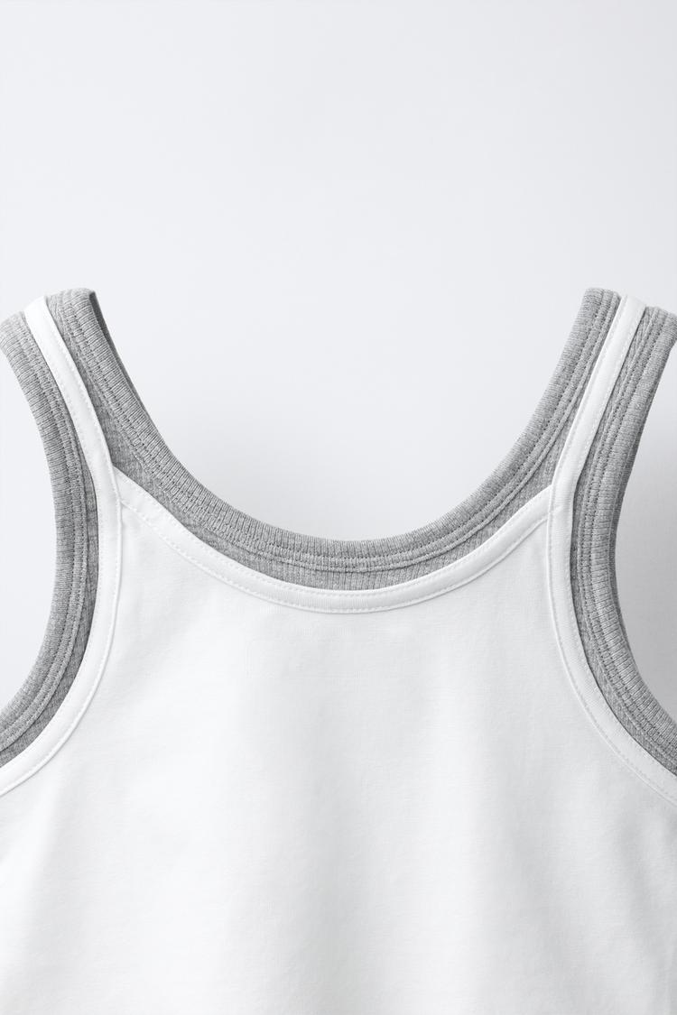ZARA ДВУХСЛОЙНЫЙ ТОП КОНТРАСТНОГО ЦВЕТА, БЕЛЫЙ