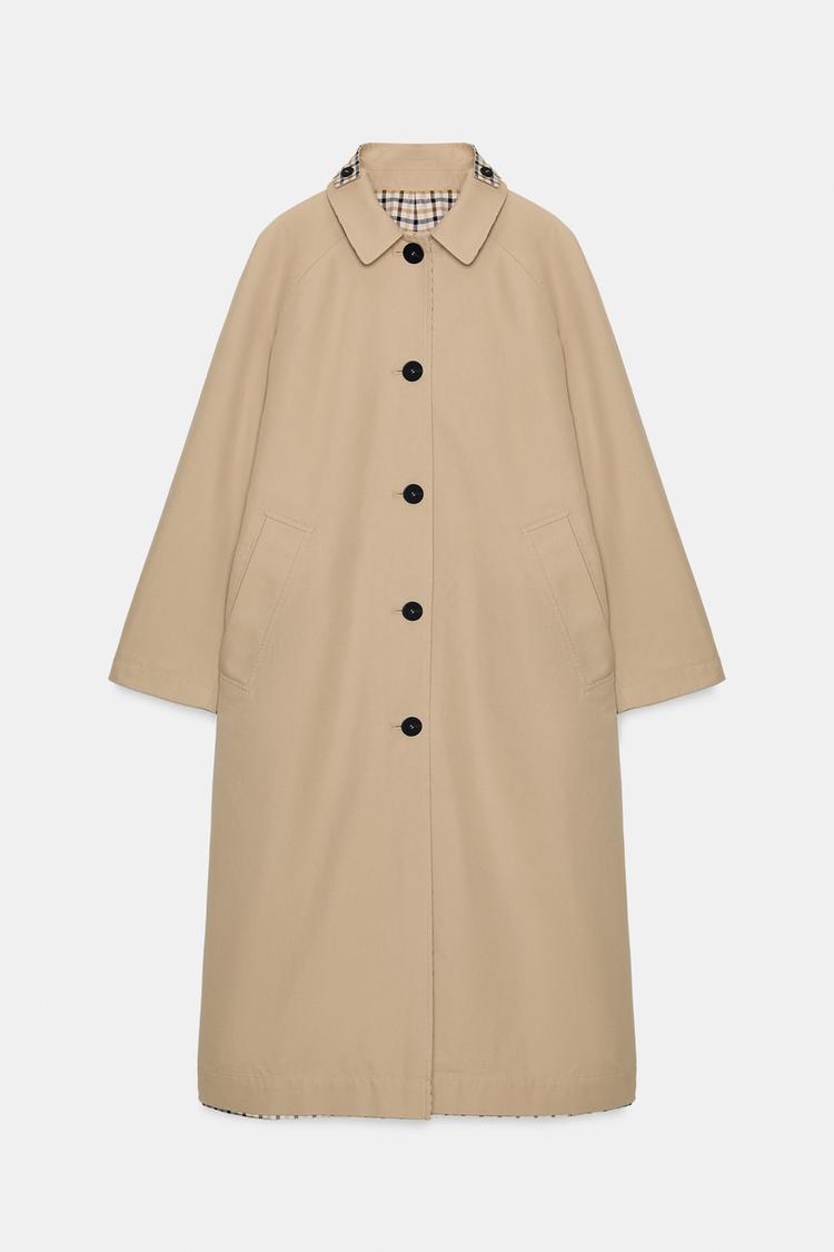 ZARA ДВУСТОРОННИЙ ТРЕНЧ В КЛЕТКУ — ZW COLLECTION, БЕЖЕВО-КОРИЧНЕВЫЙ