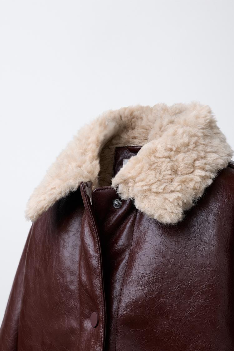 ZARA КУРТКА ИЗ ОВЧИНЫ И ИСКУССТВЕННОЙ КОЖИ, БУРГУНДИ