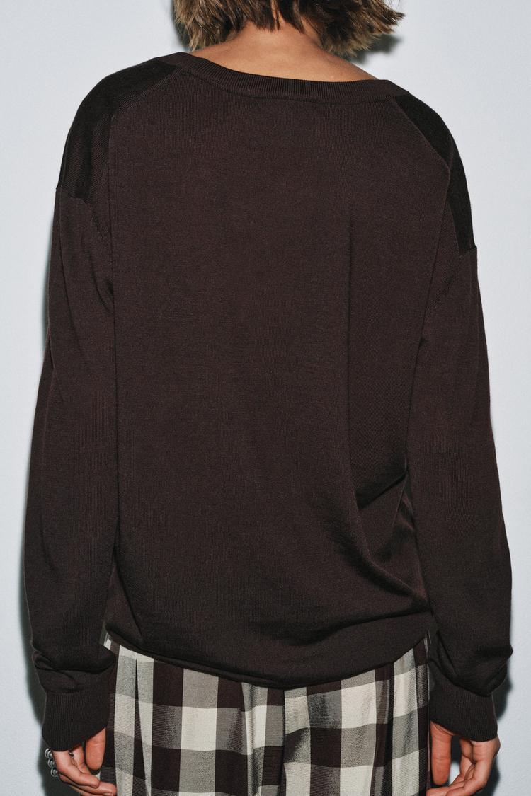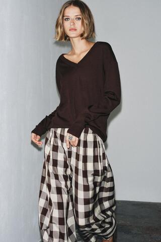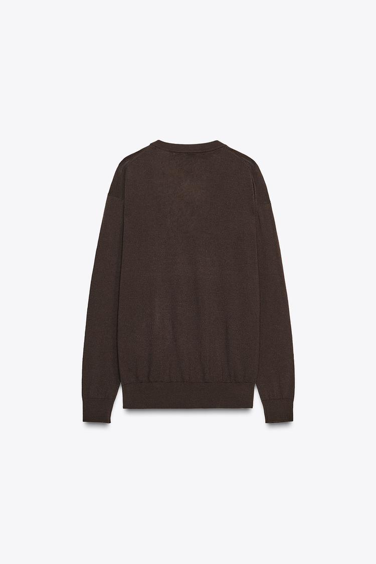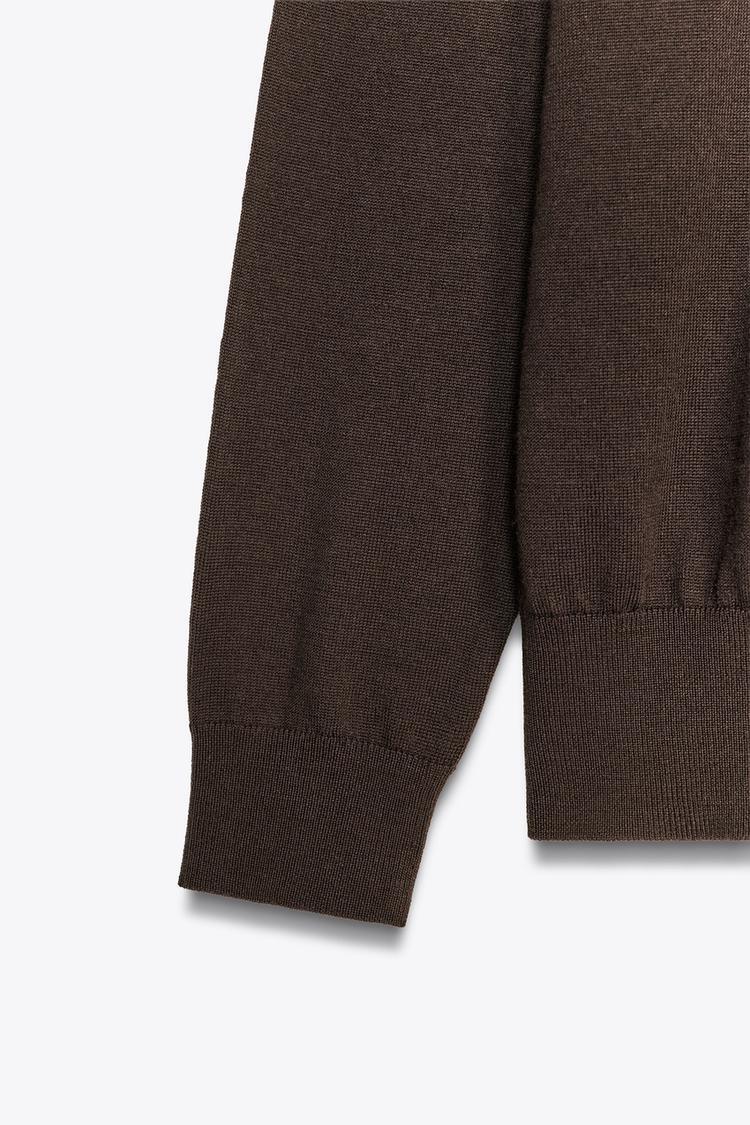 ZARA ДЖЕМПЕР ИЗ 100% ШЕРСТИ С V-ОБРАЗНЫМ ВЫРЕЗОМ, ТЕМНО-КОРИЧНЕВЫЙ