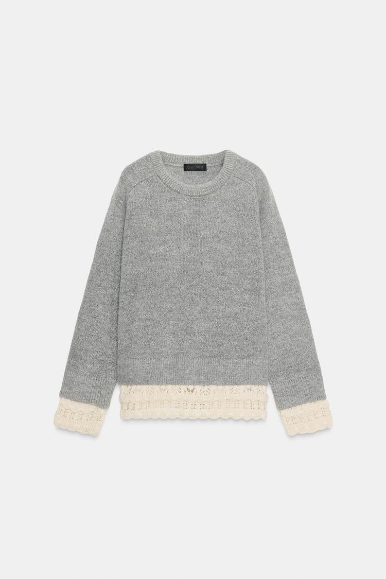 ZARA ДЖЕМПЕР ИЗ КОМБИНИРОВАННОГО ТРИКОТАЖА, СЕРЫЙ МЕЛАНЖ