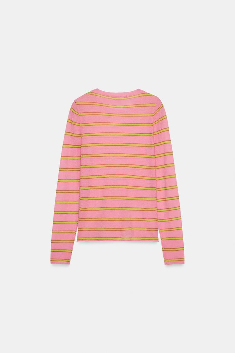 ZARA ДЖЕМПЕР ИЗ ШЕРСТИ В ПОЛОСКУ, РОЗОВЫЙ