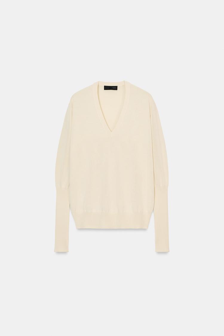 ZARA ДЖЕМПЕР ИЗ ТОНКОГО ТРИКОТАЖА С V-ОБРАЗНЫМ ВЫРЕЗОМ, ЦВЕТ СЛОНОВОЙ КОСТИ
