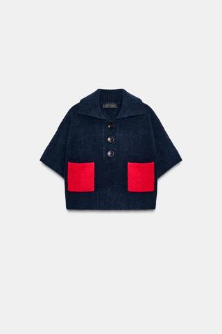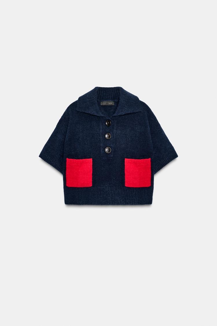 ZARA ДЖЕМПЕР ИЗ ТРИКОТАЖА С КОРОТКИМИ РУКАВАМИ, МОРСКОЙ СИНИЙ