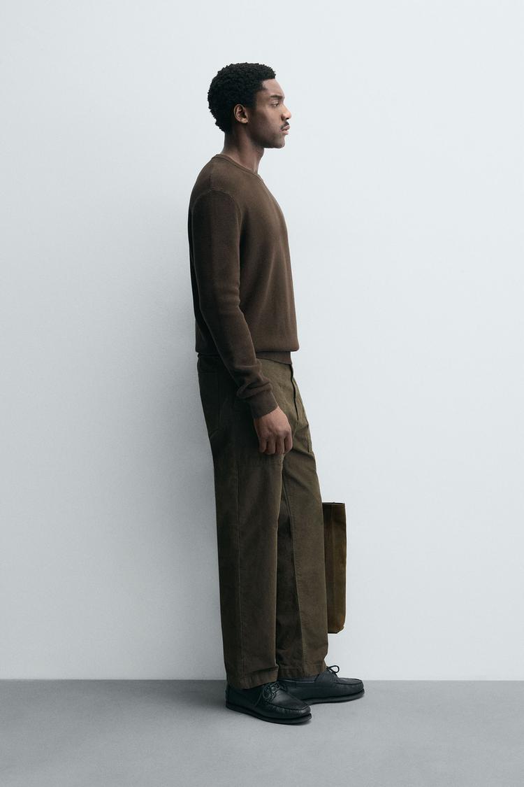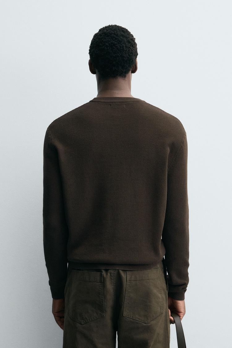 ZARA ДЖЕМПЕР КЛАССИЧЕСКОГО КРОЯ С РЕЛЬЕФНОЙ ТКАНЬЮ, КОРИЧНЕВЫЙ