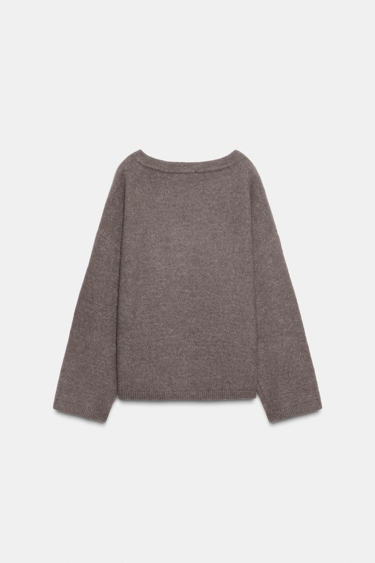 ZARA ДЖЕМПЕР С БРОШЬЮ, СЕРОВАТО-КОРИЧНЕВЫЙ