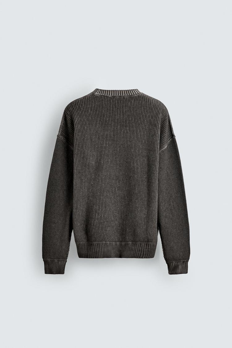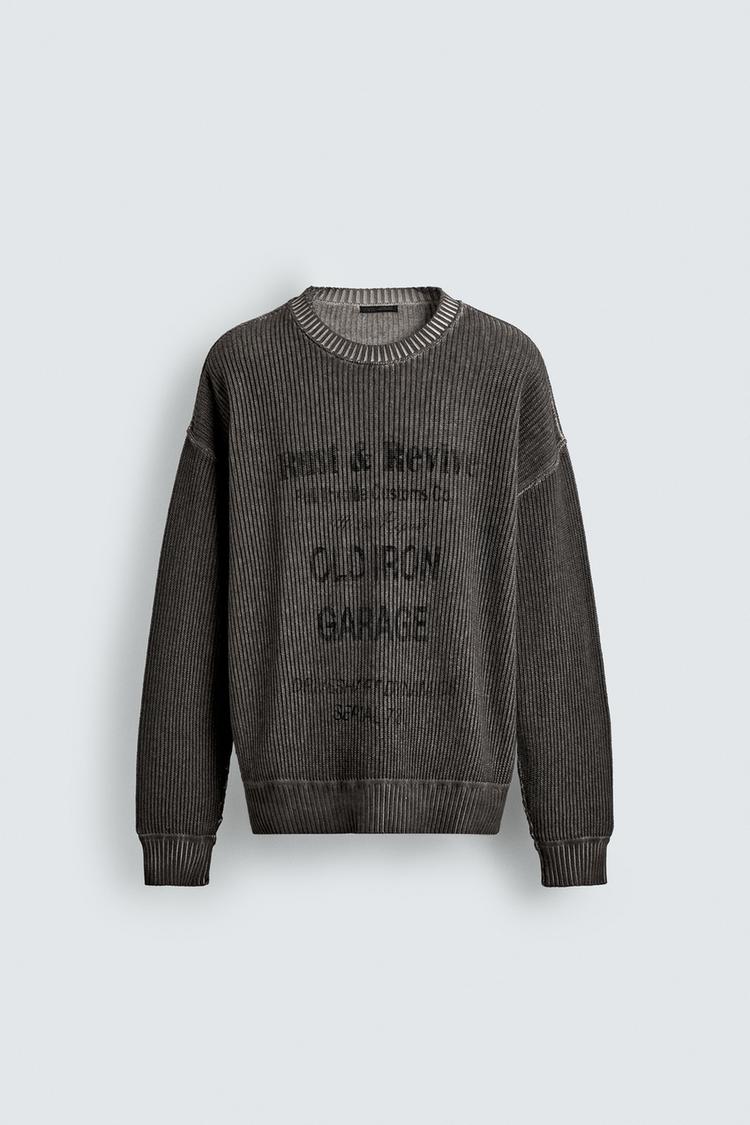 ZARA ДЖЕМПЕР С ПРИНТОМ И ЭФФЕКТОМ ПОТЕРТОСТИ, ЧЕРНЫЙ