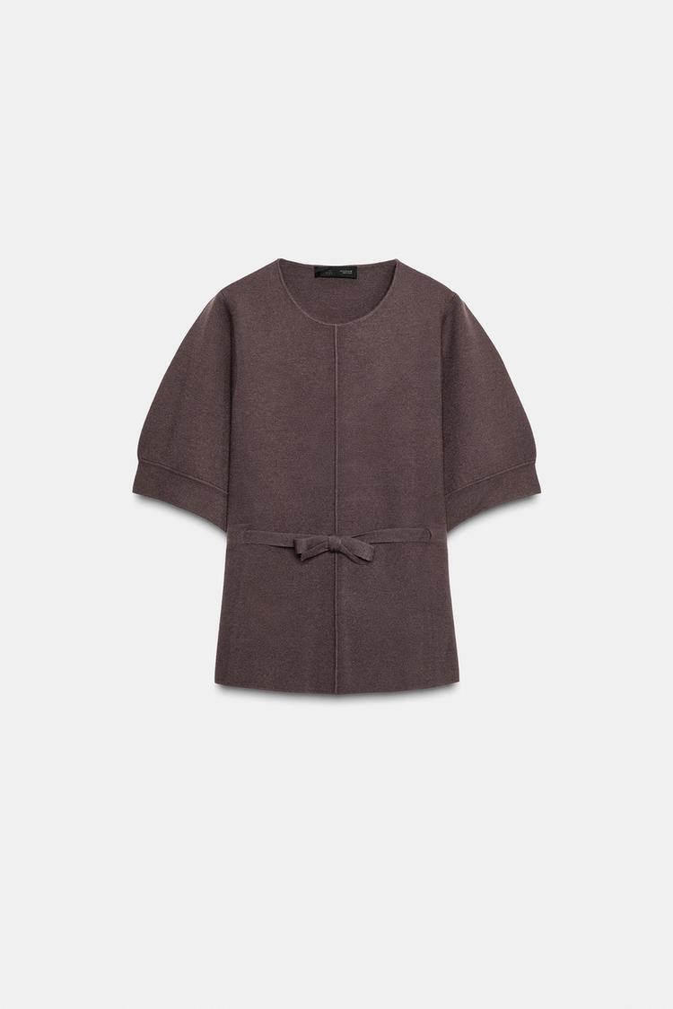 ZARA ДЖЕМПЕР С РУКАВАМИ-БУФАМИ, КОРИЧНЕВЫЙ