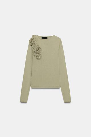 ZARA ДЖЕМПЕР С ЦВЕТАМИ, СВЕТЛЫЙ ХАКИ