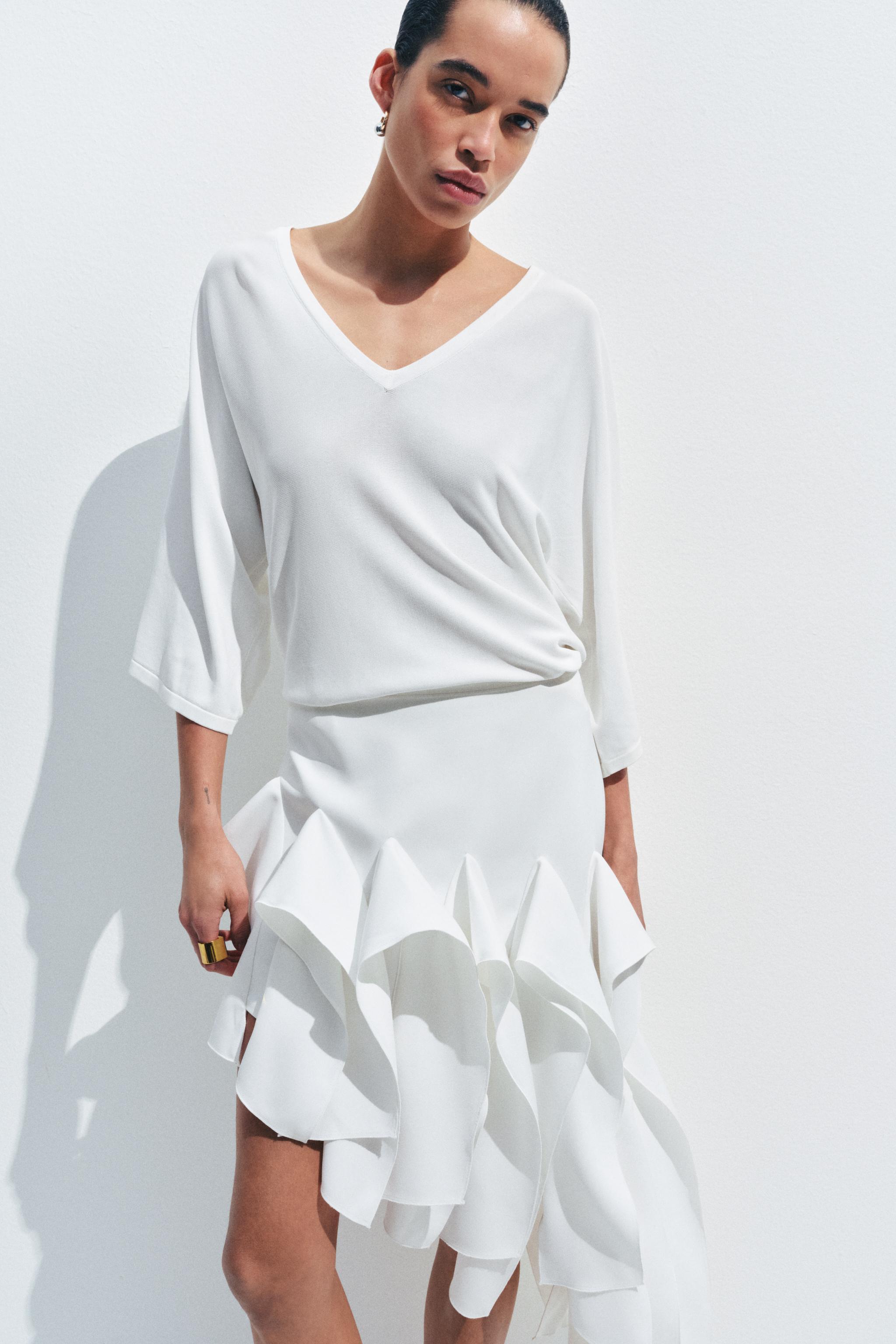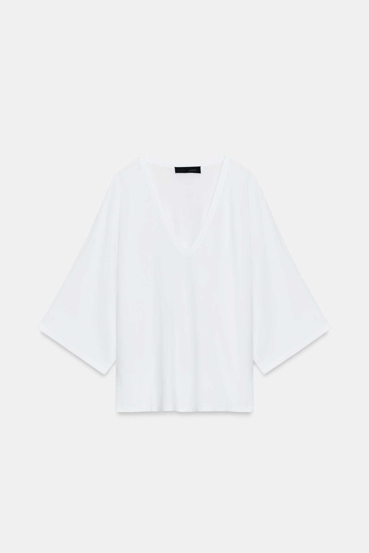 ZARA ДЖЕМПЕР С V-ОБРАЗНЫМ ВЫРЕЗОМ, БЕЛЫЙ