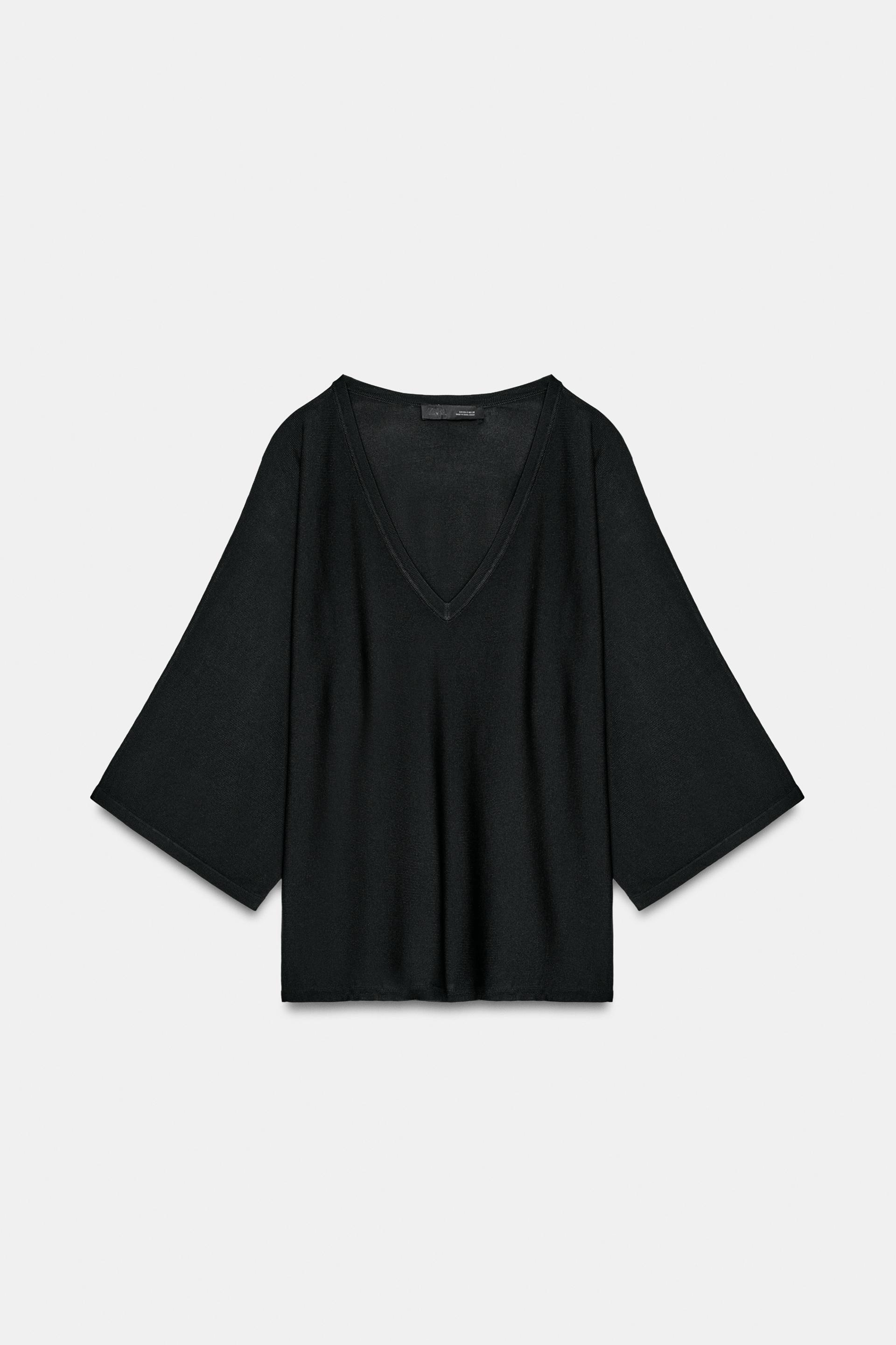 ZARA ДЖЕМПЕР С V-ОБРАЗНЫМ ВЫРЕЗОМ, ЧЕРНЫЙ