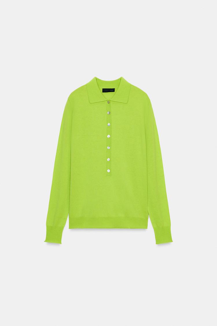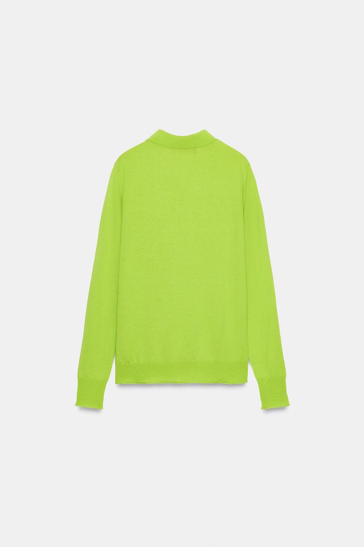 ZARA ДЖЕМПЕР С ВОРОТНИКОМ ПОЛО, ЛАЙМОВЫЙ