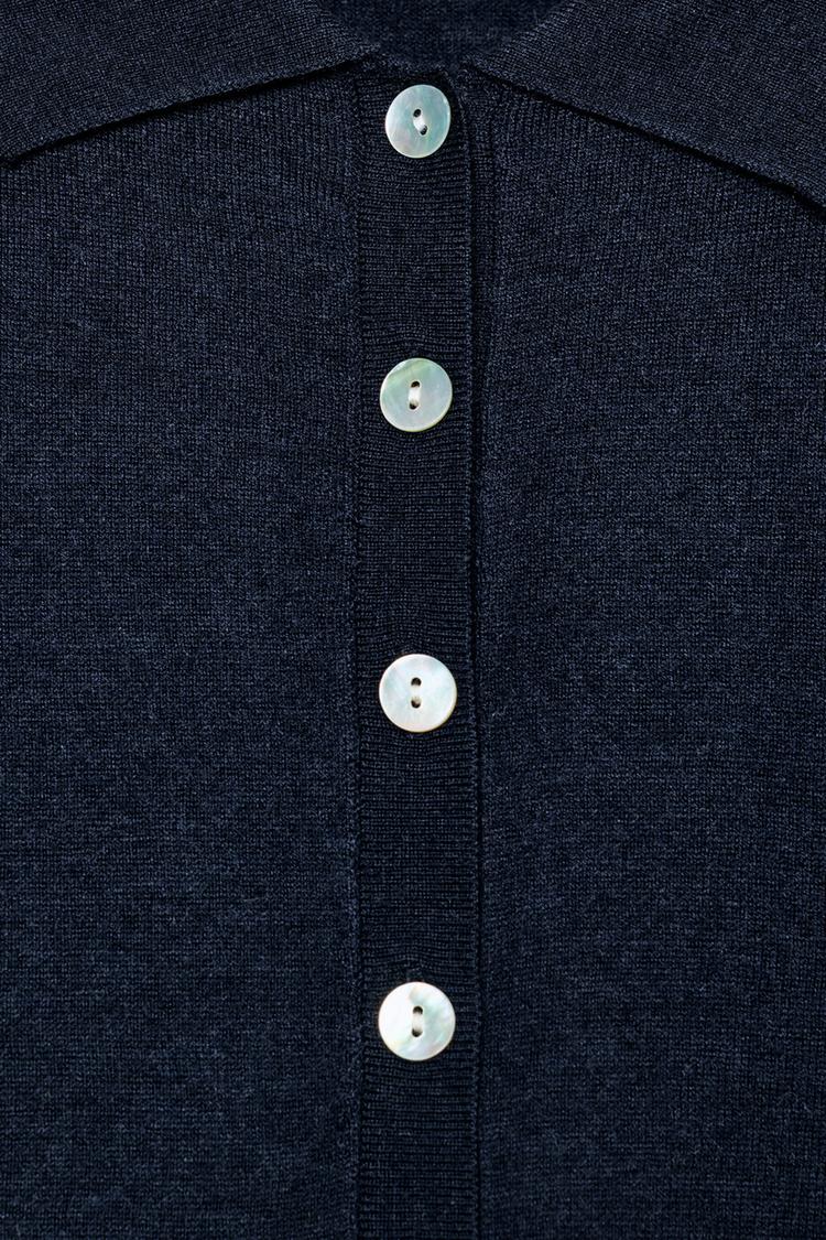Тонкий трикотажный джемпер поло из шерсти. Воротник поло и длинные рукава. Пуговицы спереди.