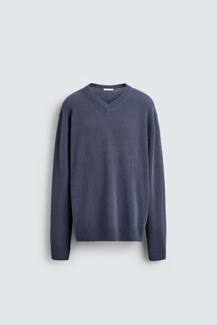 ZARA ДЖЕМПЕР ТЕКСТУРНОЙ ВЯЗКИ, ЛИНЯЛЫЙ СИНИЙ