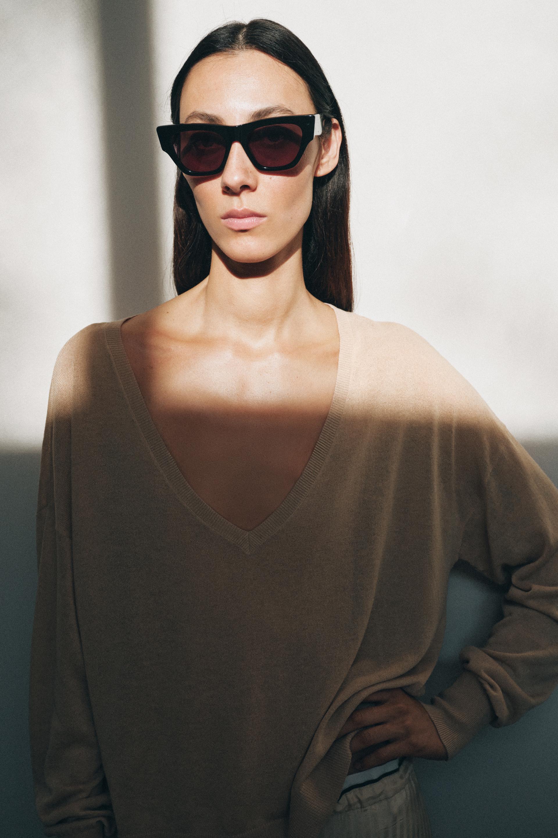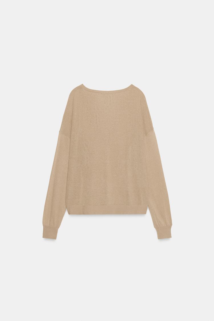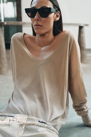 ZARA ДЖЕМПЕР ТОНКОЙ ВЯЗКИ С V-ОБРАЗНЫМ ВЫРЕЗОМ, ТЕЛЕСНО-РОЗОВЫЙ