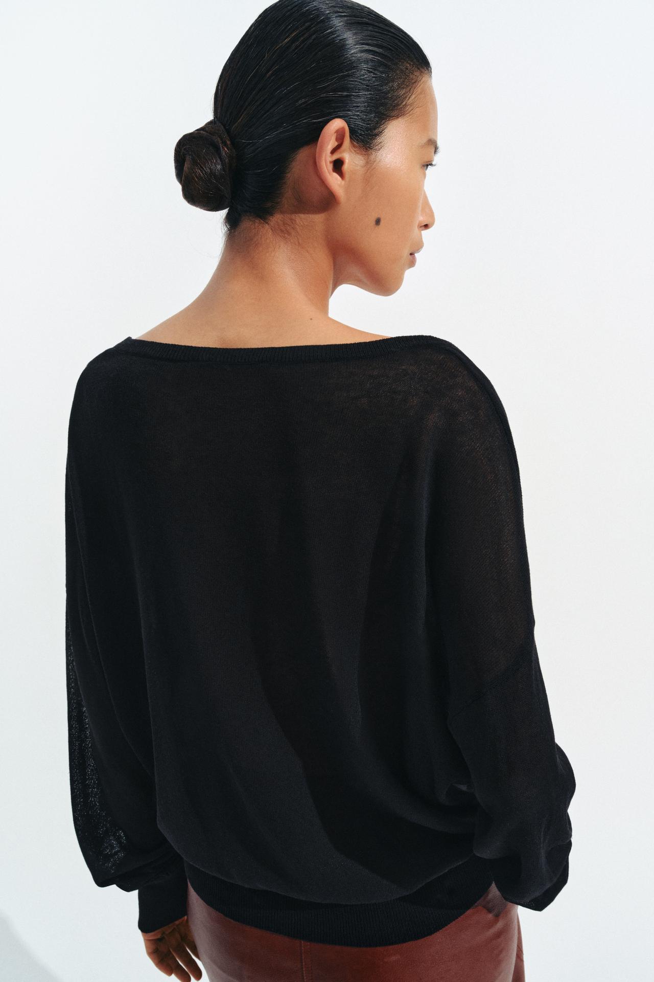 ZARA ДЖЕМПЕР ТОНКОЙ ВЯЗКИ С V-ОБРАЗНЫМ ВЫРЕЗОМ,ЧЕРНЫЙ