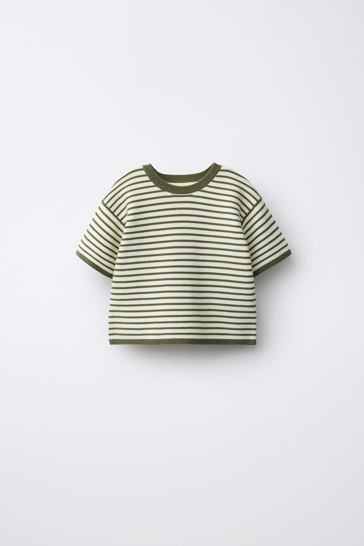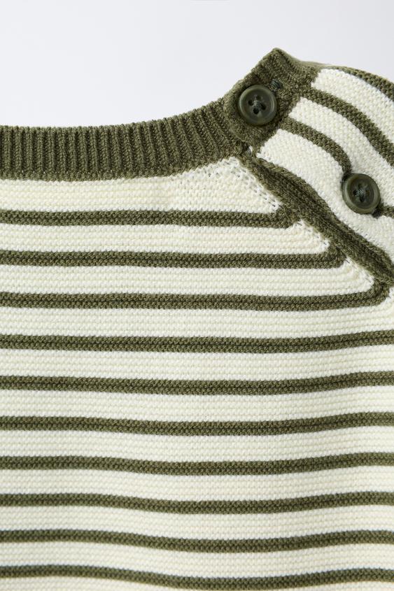 ZARA ДЖЕМПЕР В ПОЛОСКУ, ЭКРЮ/ЗЕЛЕНЫЙ