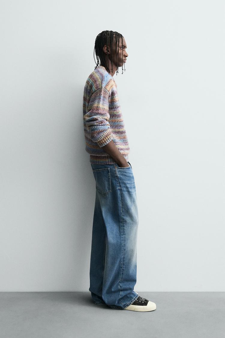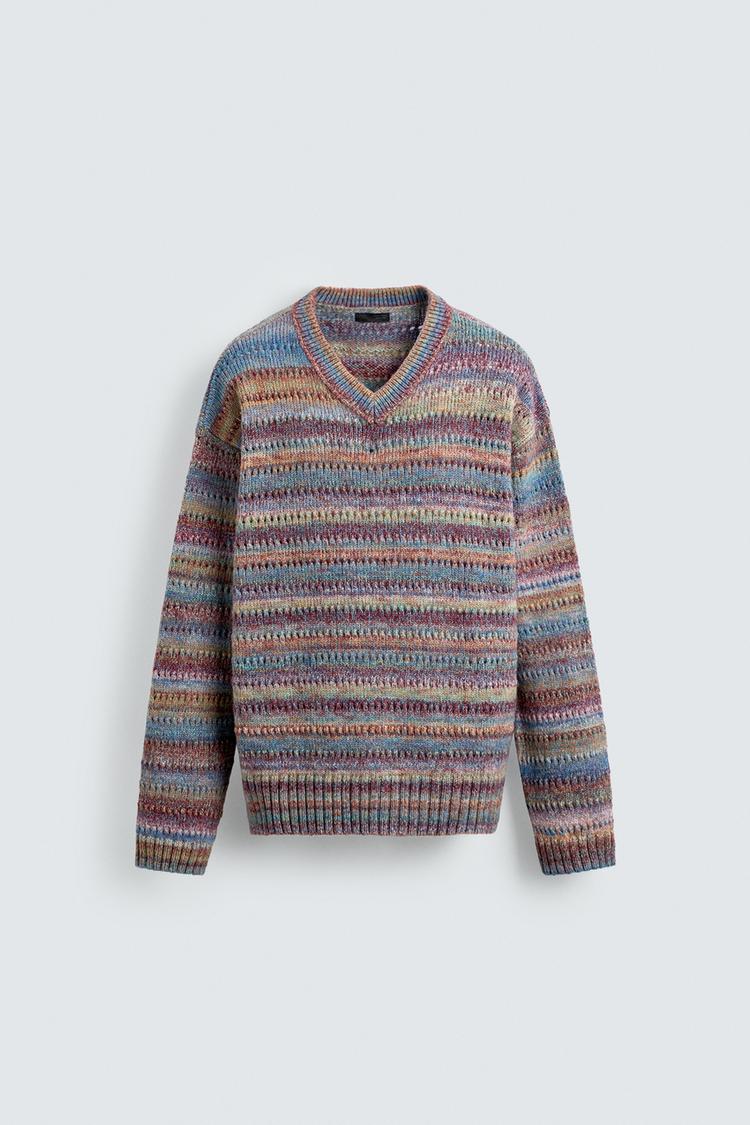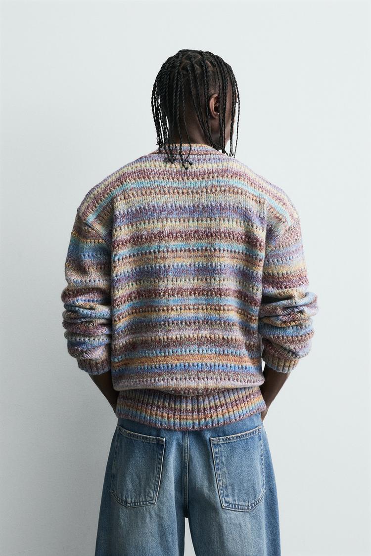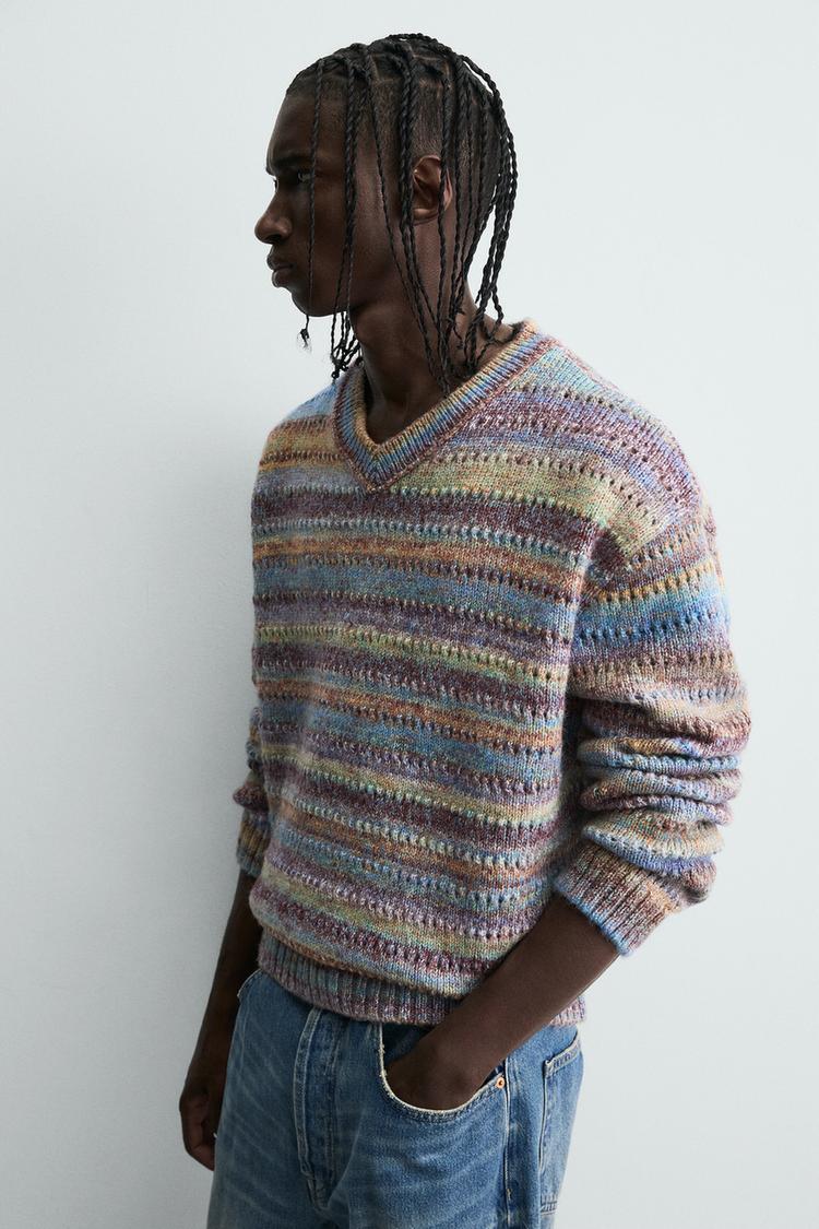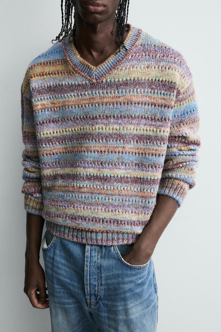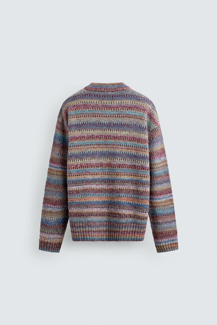 ZARA ДЖЕМПЕР В ПОЛОСКУ С АЖУРНОЙ ВЯЗКОЙ, РАЗНОЦВЕТНЫЙ