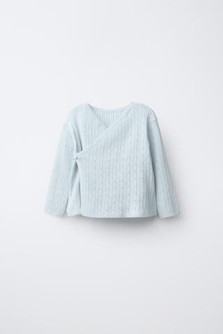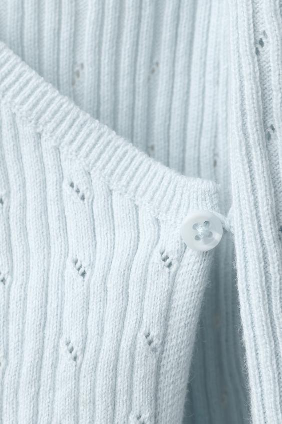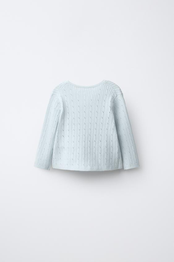 ZARA ДЖЕМПЕР В РУБЧИК АЖУРНОЙ ВЯЗКИ, ГОЛУБОЙ