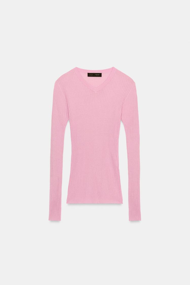 ZARA ДЖЕМПЕР В РУБЧИК, ЦВЕТ МАЛЬВЫ