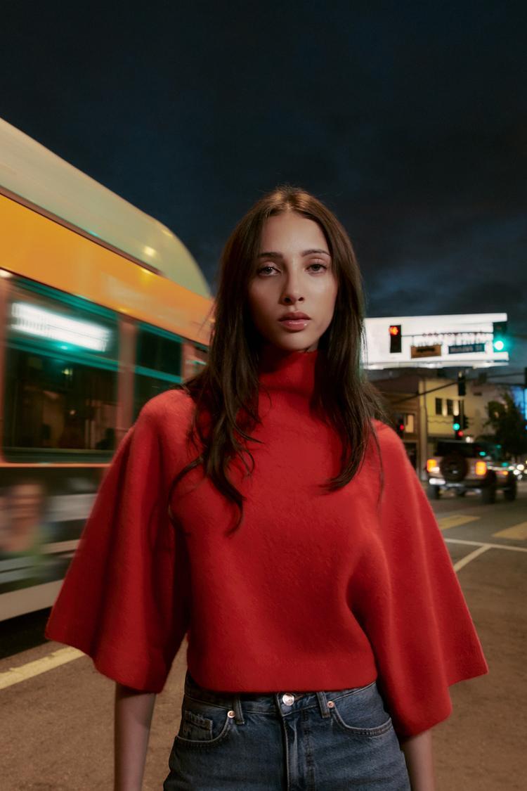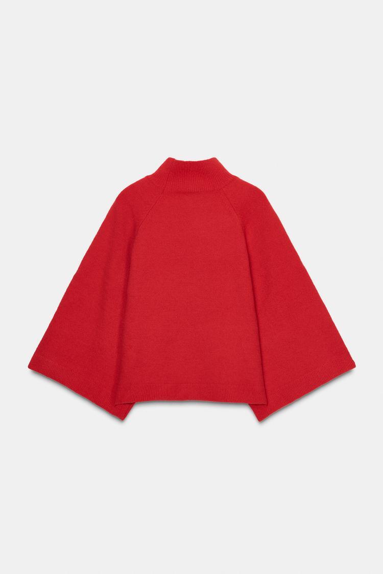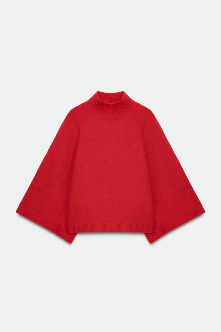 ZARA ДЖЕМПЕР ВЯЗАНЫЙ С ШИРОКИМИ РУКАВАМИ, КРАСНЫЙ