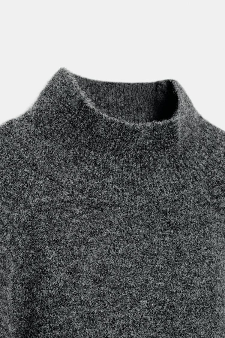 ZARA ДЖЕМПЕР ВЯЗАНЫЙ С ШИРОКИМИ РУКАВАМИ, СЕРЫЙ МЕЛАНЖ