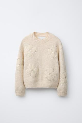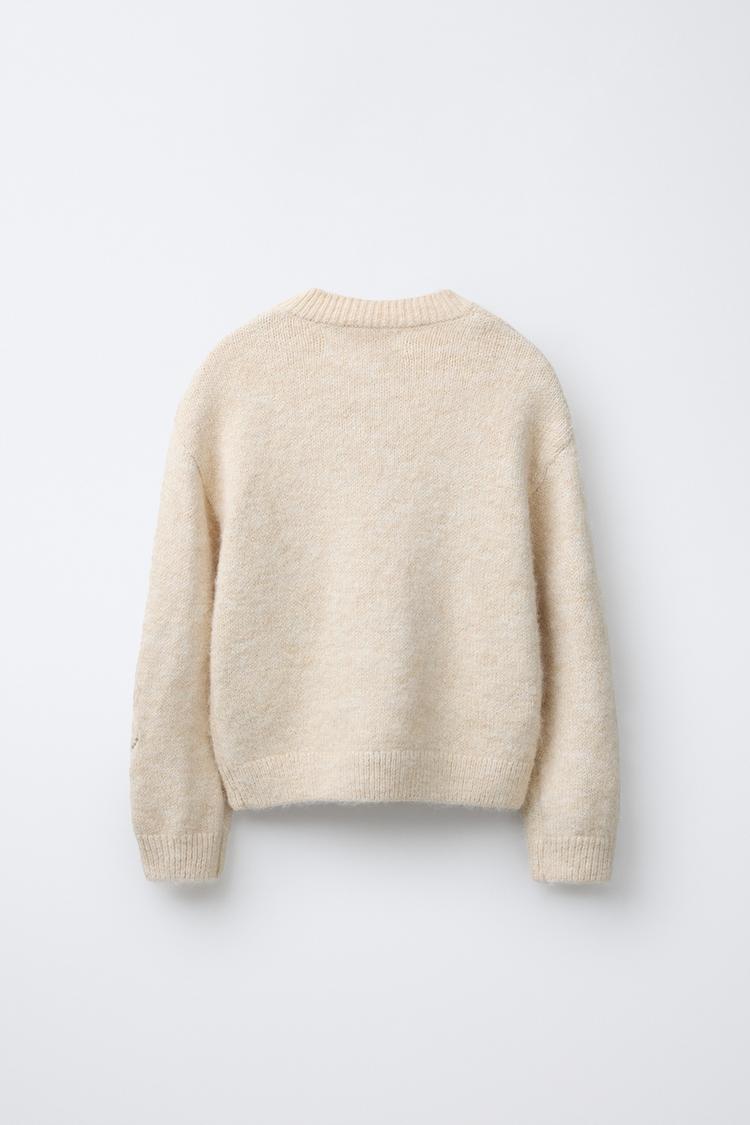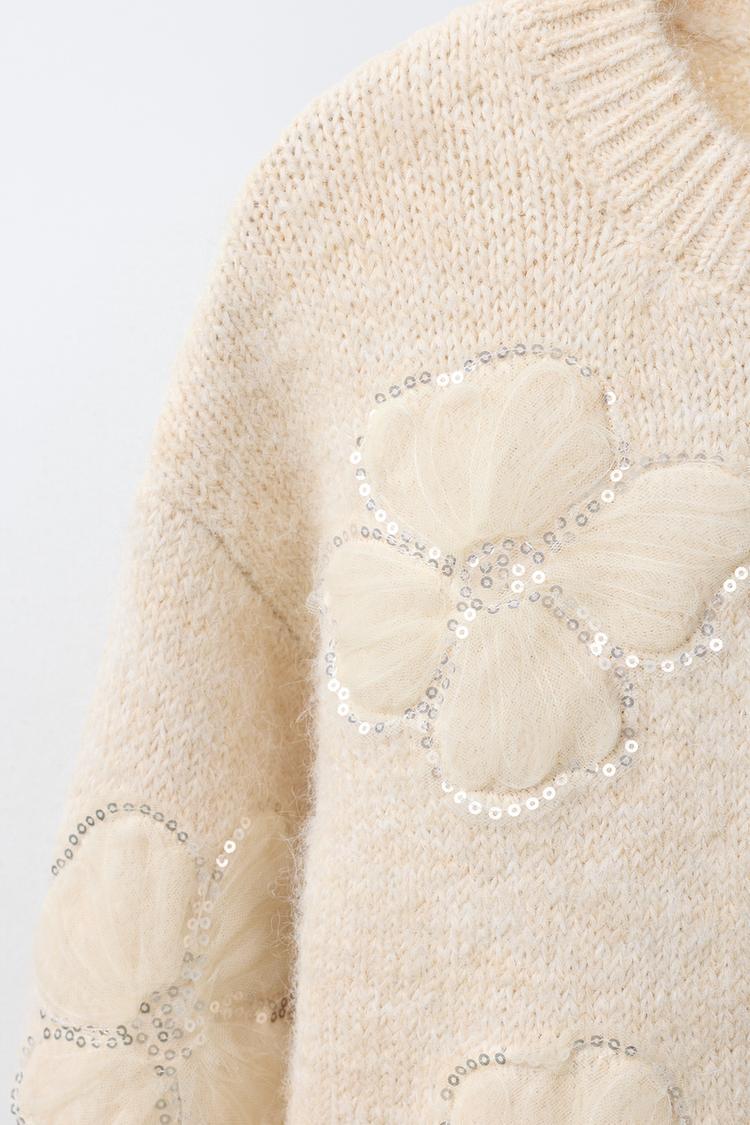 ZARA ДЖЕМПЕР ВЯЗАНЫЙ С ПАЙЕТКАМИ, ЭКРЮ