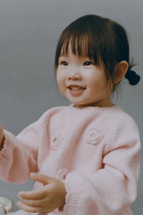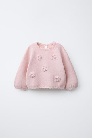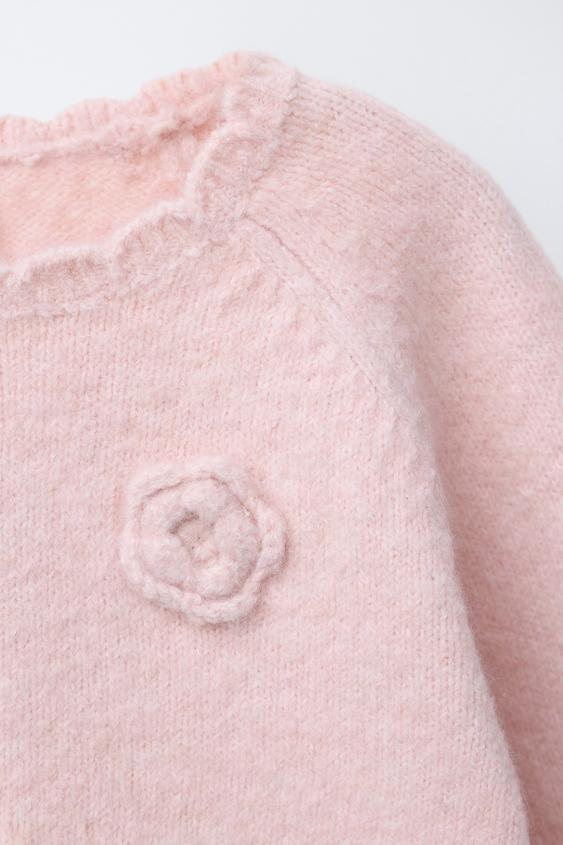ZARA ДЖЕМПЕР ВЯЗАНЫЙ ЦВЕТЫ КРЮЧКОМ, СВЕТЛО-РОЗОВЫЙ