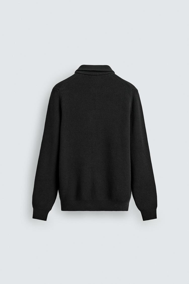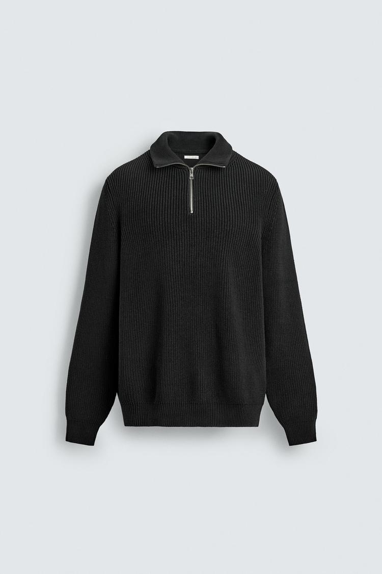 ZARA ДЖЕМПЕР ВЯЗАНЫЙ ЖЕМЧУЖНЫМ УЗОРОМ С ВОРОТНИКОМ НА МОЛНИИ, ЧЕРНЫЙ