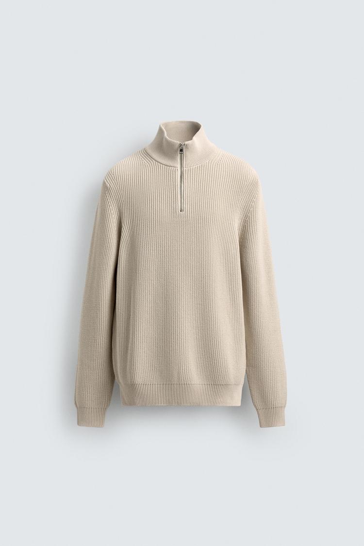 ZARA ДЖЕМПЕР ВЯЗАНЫЙ ЖЕМЧУЖНЫМ УЗОРОМ С ВОРОТНИКОМ НА МОЛНИИ, ЦВЕТ СЛОНОВОЙ КОСТИ