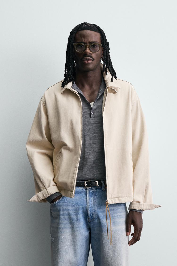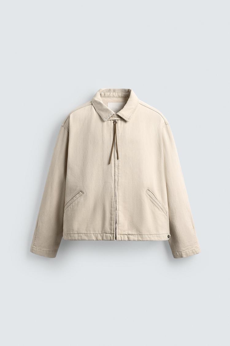 ZARA ДЖИНСОВАЯ КУРТКА НА МОЛНИИ, ПЕСОЧНЫЙ