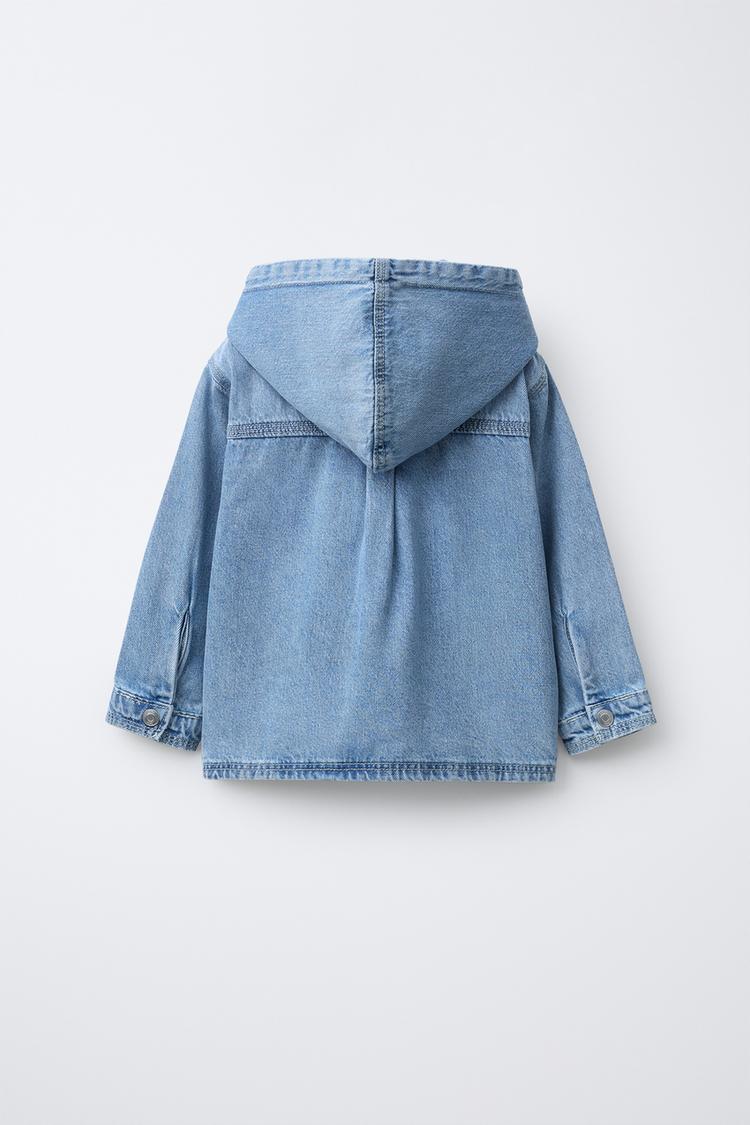 ZARA ДЖИНСОВАЯ КУРТКА-РУБАШКА С КАПЮШОНОМ, ВЫЦВЕТШИЙ СИНИЙ