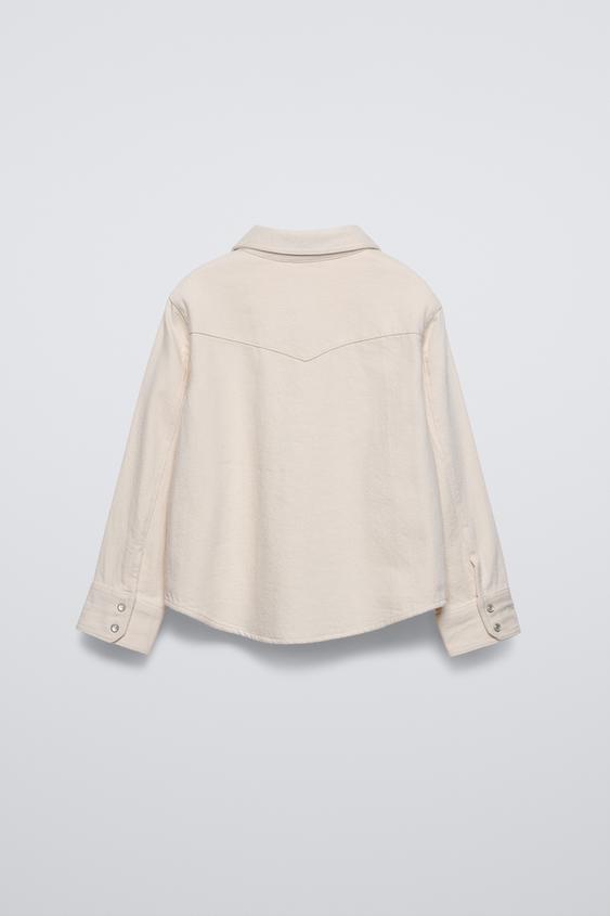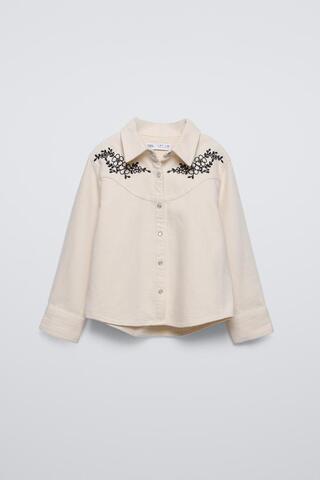 ZARA ДЖИНСОВАЯ КУРТКА-РУБАШКА С ЦВЕТОЧНЫМ ПРИНТОМ, ЭКРЮ