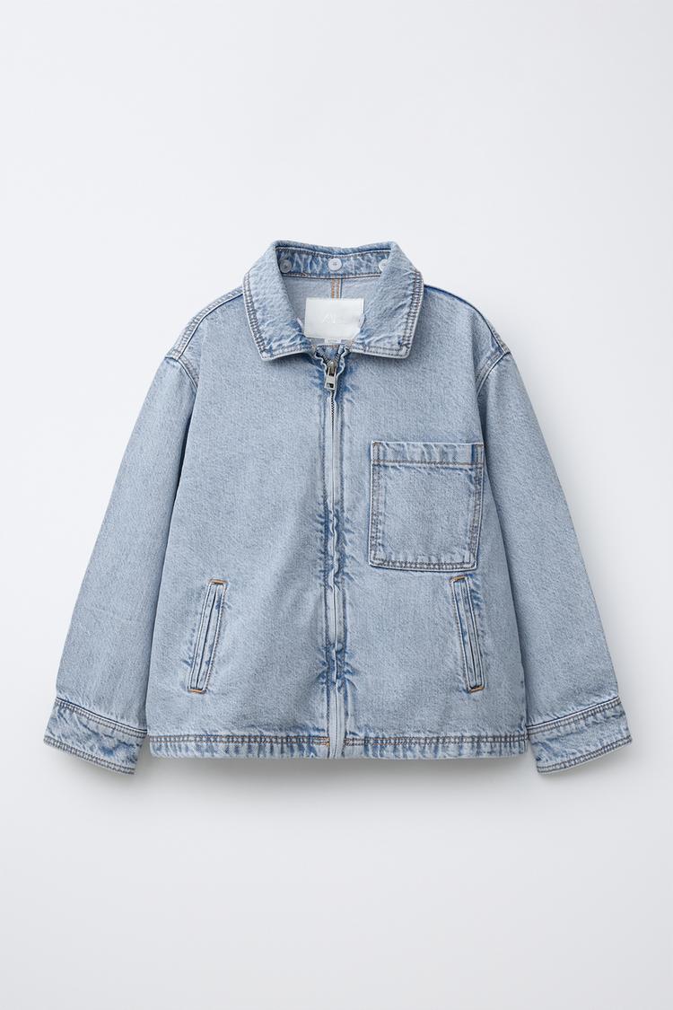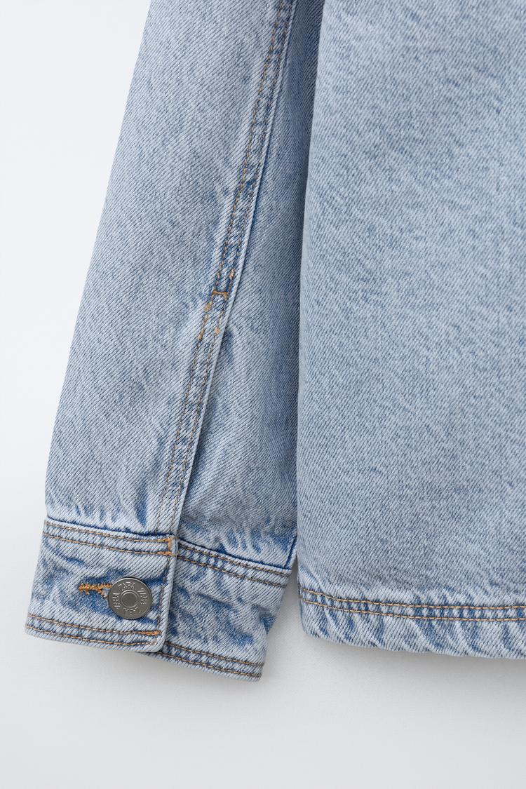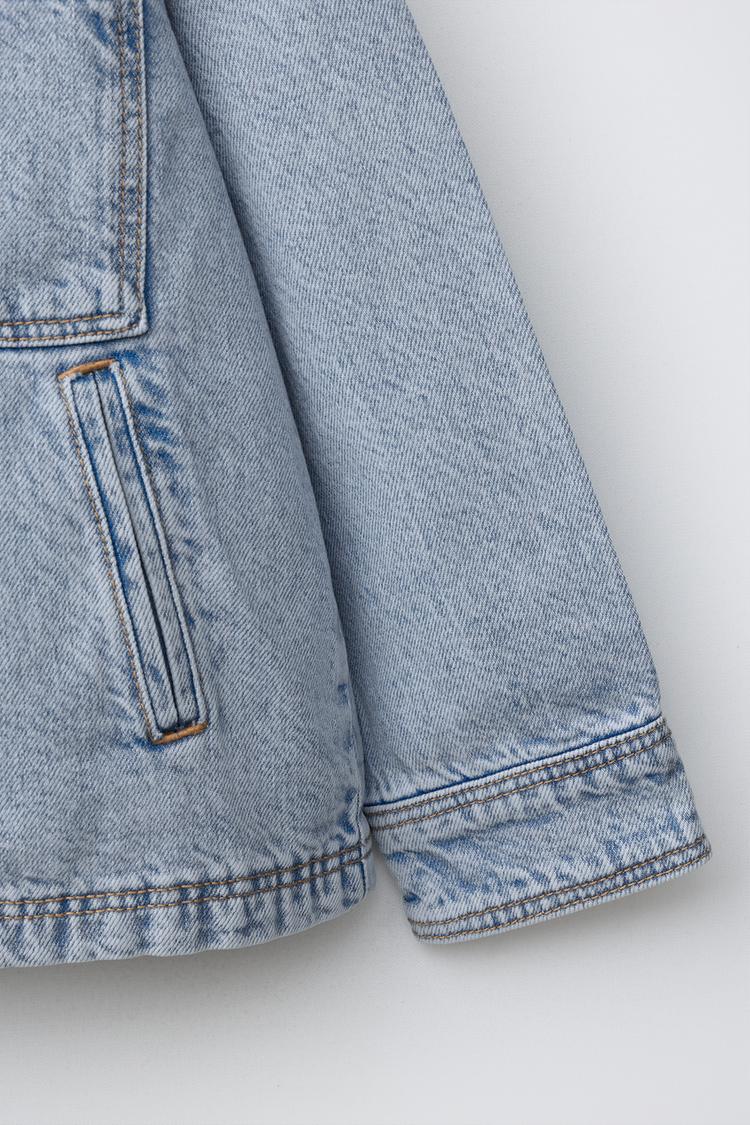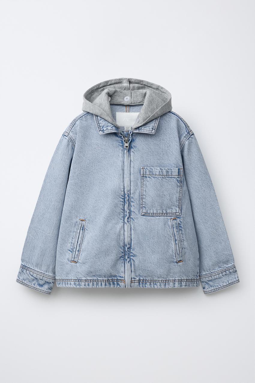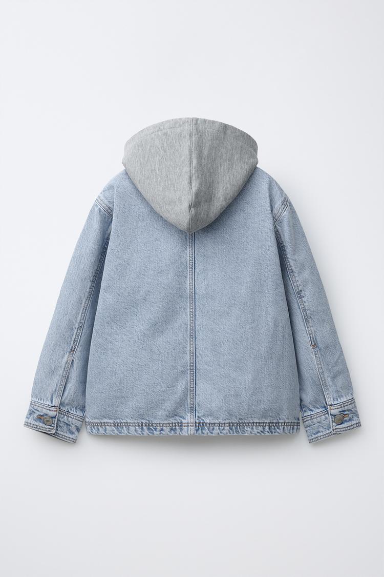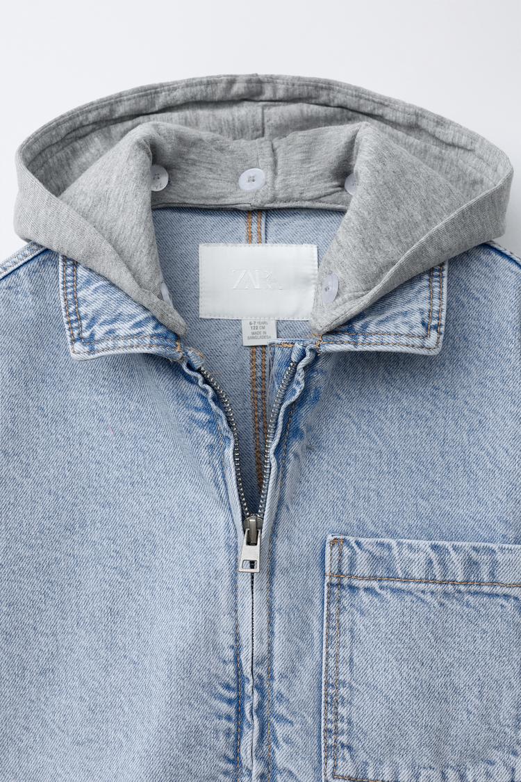 ZARA ДЖИНСОВАЯ КУРТКА-РУБАШКА СО СЪЕМНЫМ КАПЮШОНОМ, ВЫЦВЕТШИЙ СИНИЙ