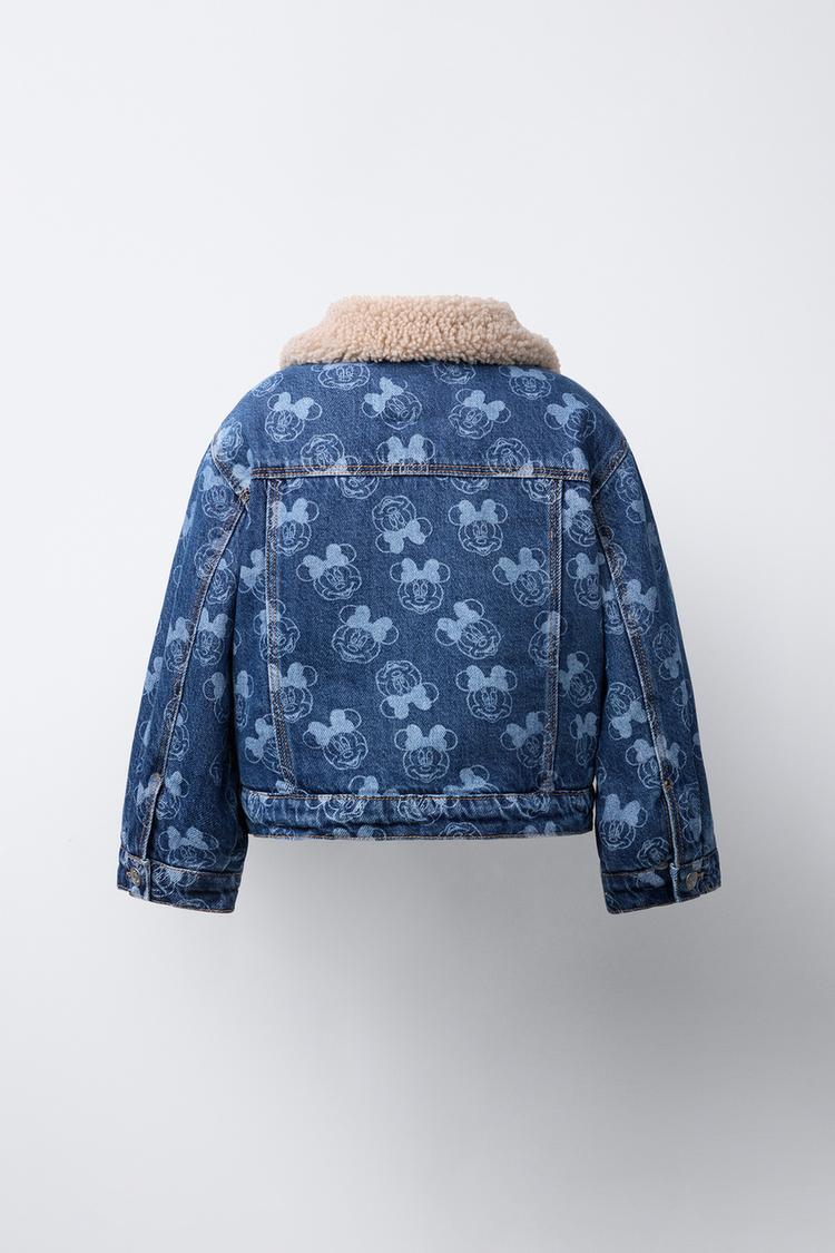 ZARA ДЖИНСОВАЯ КУРТКА С ИСКУССТВЕННОЙ ОВЧИНОЙ MINNIE MOUSE © DISNEY, ВЫЦВЕТШИЙ СИНИЙ