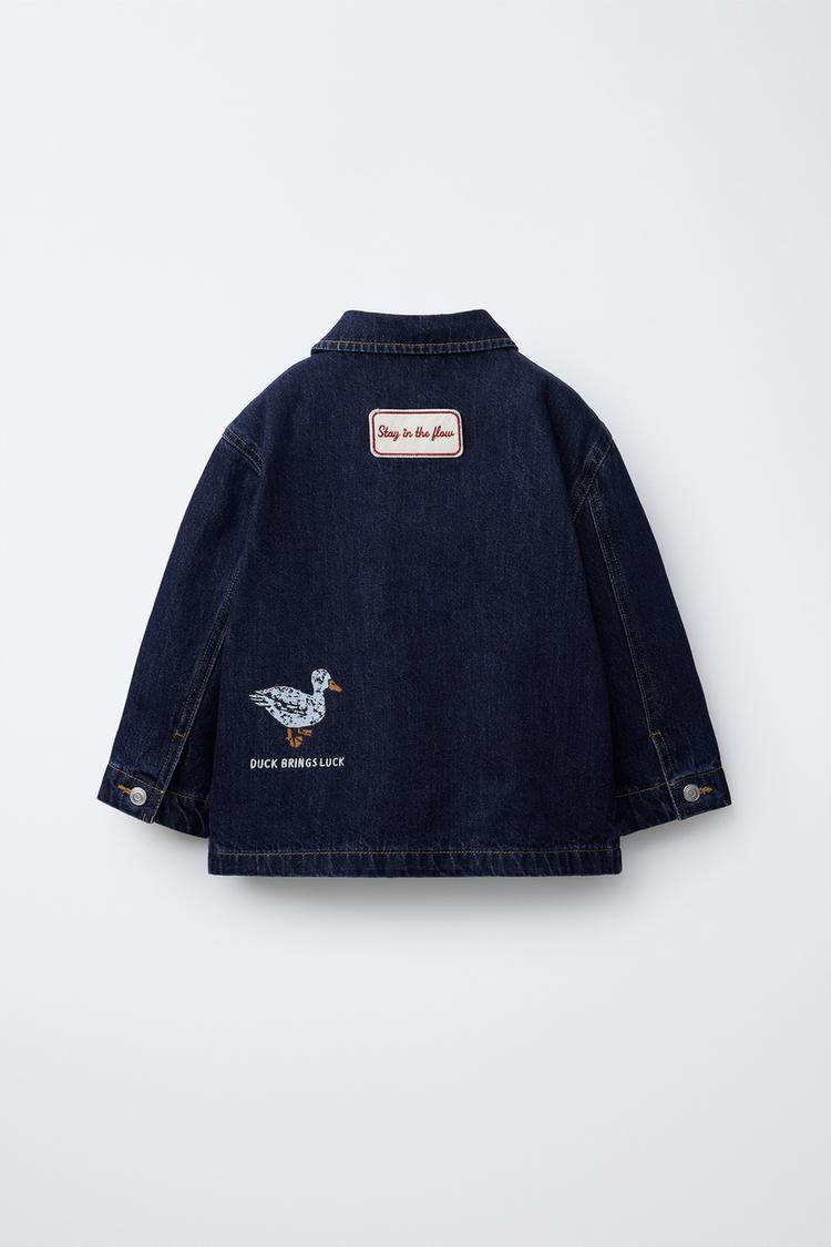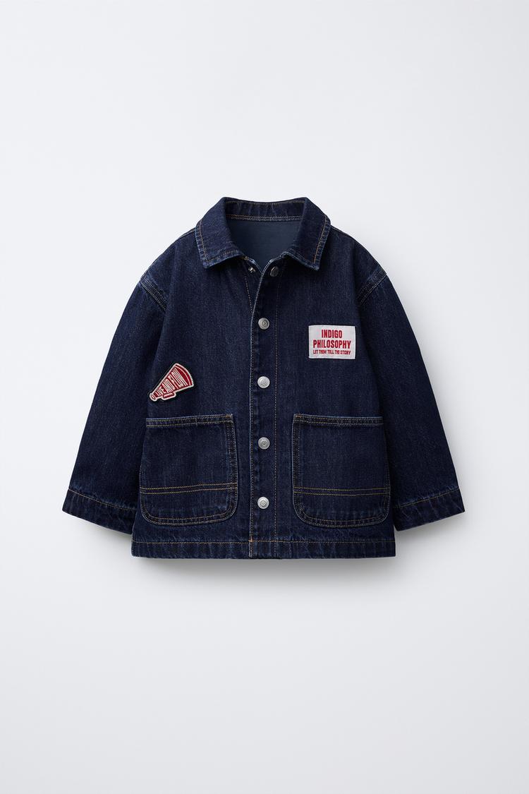 ZARA ДЖИНСОВАЯ КУРТКА С НАШИВКАМИ, СИНИЙ