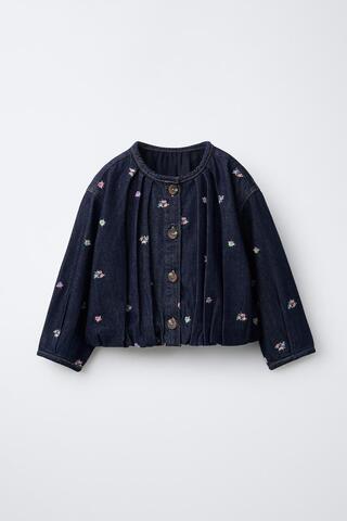 ZARA ДЖИНСОВАЯ КУРТКА С ВЫШИТЫМИ ЦВЕТАМИ, СИНИЙ