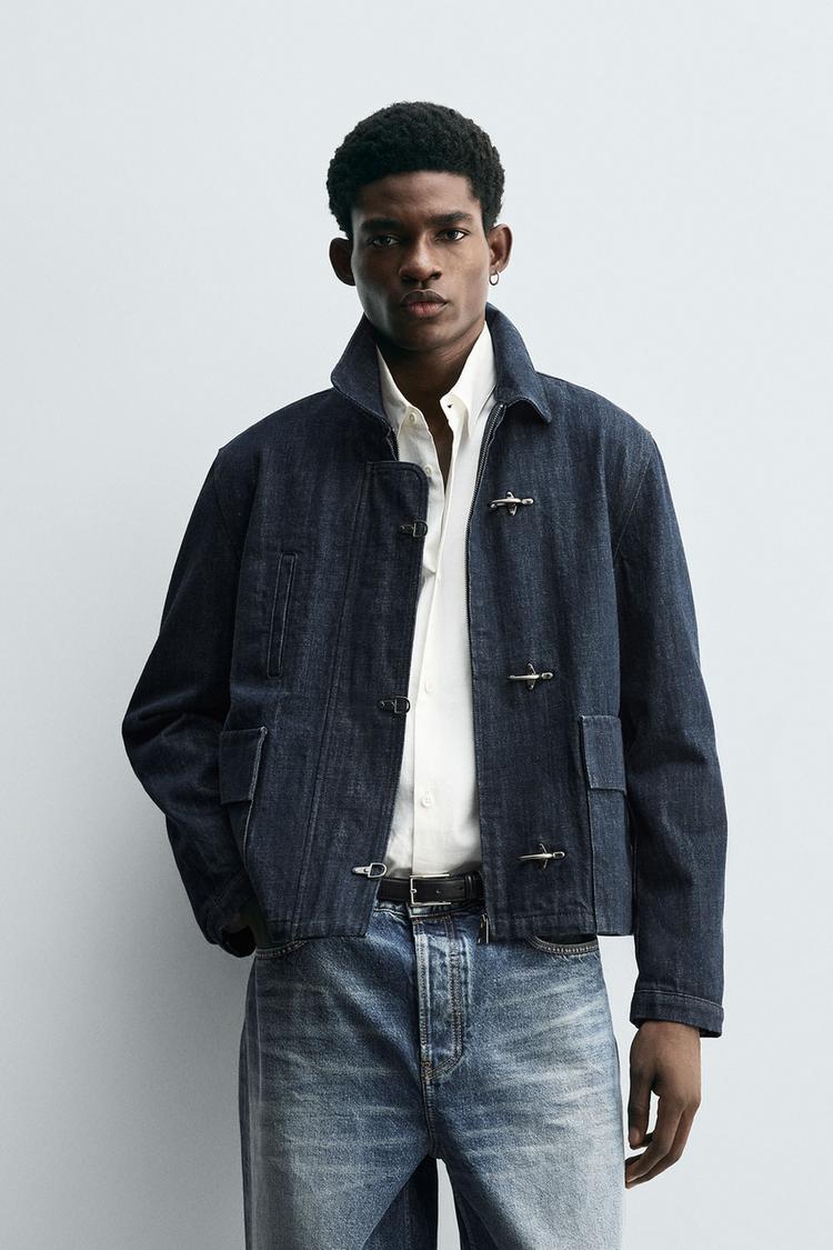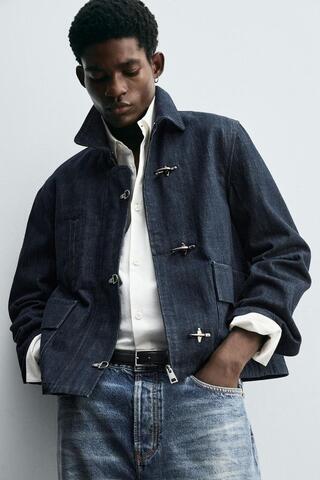 ZARA ДЖИНСОВАЯ КУРТКА С ЗАСТЕЖКОЙ-ТОГГЛ, ИНДИГО