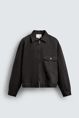 ZARA ДЖИНСОВАЯ КУРТКА СВОБОДНОГО КРОЯ, ЧЕРНЫЙ МЕЛАНЖ