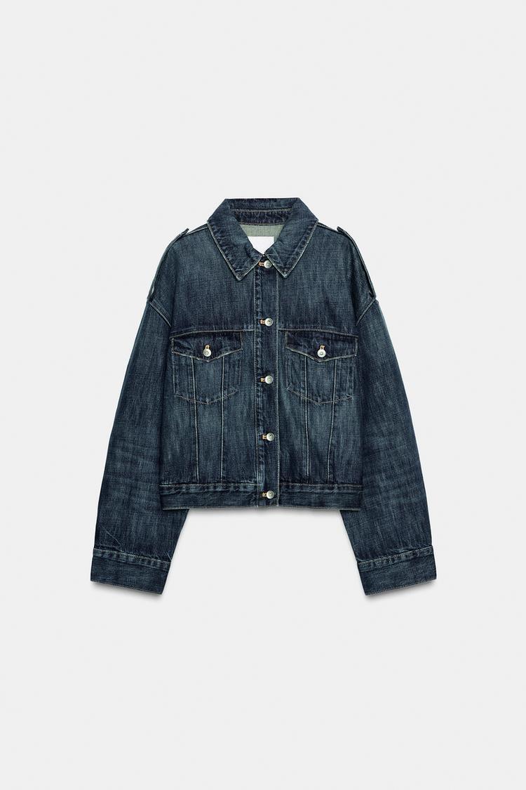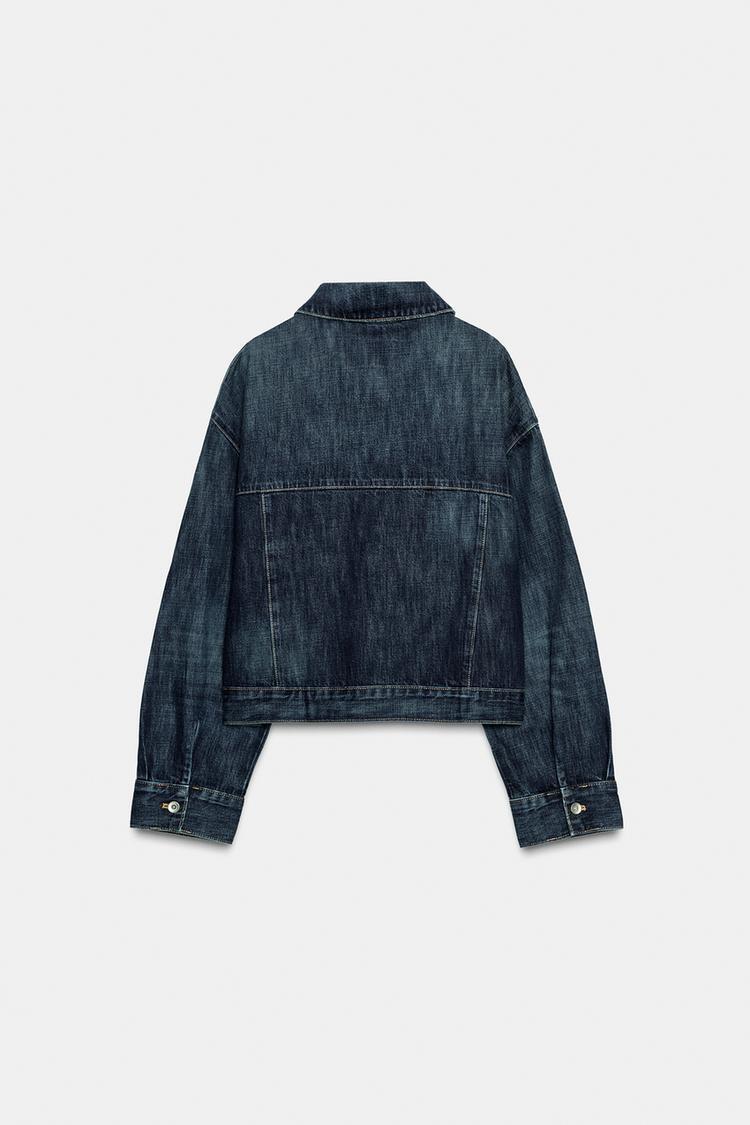 ZARA ДЖИНСОВАЯ КУРТКА TRF С ХЛЯСТИКАМИ, МОРСКОЙ СИНИЙ