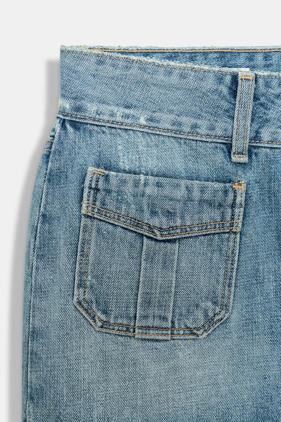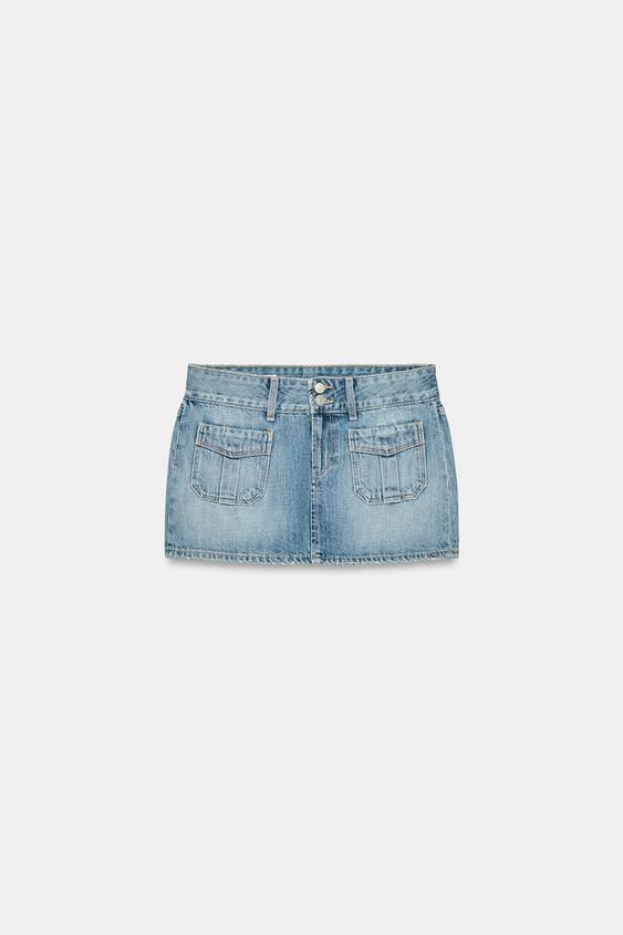 ZARA ДЖИНСОВАЯ МИНИ-ЮБКА TRF, ГОЛУБОЙ